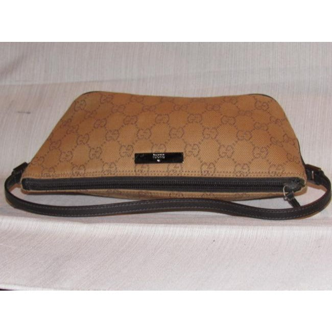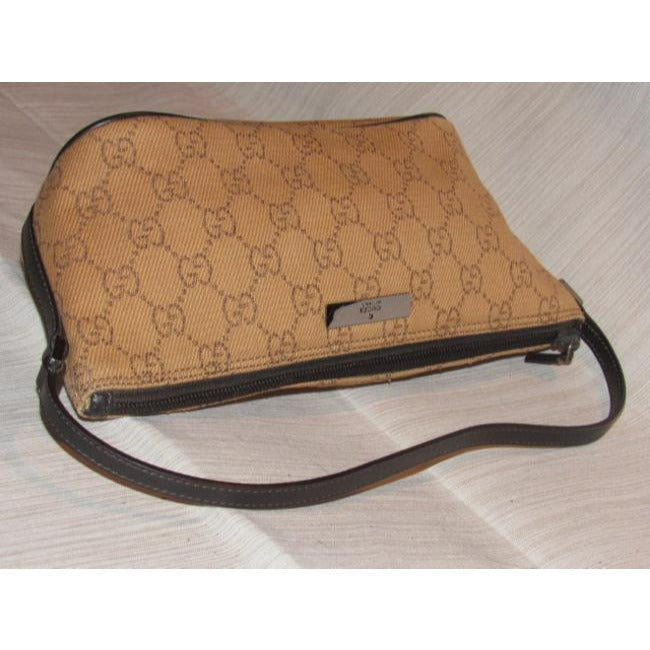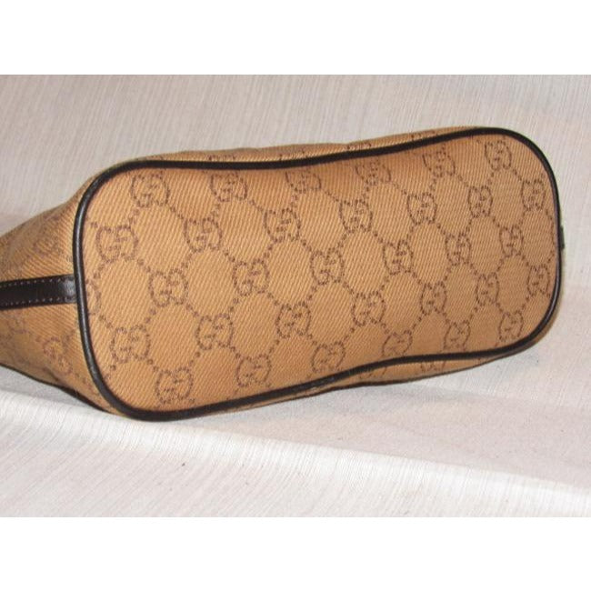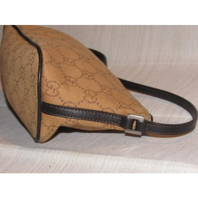 The bag is the perfect hobo by Gucci in a great, everyday style! The exterior is rusty orange canvas fabric with the large G logo design and brown leather. The purse is a smaller size and has chrome accents! It is perfect for a night out or if you travel light!