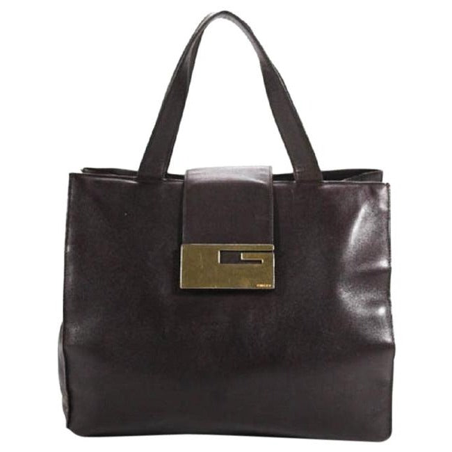 Gucci Vintage Satcheltotedesigner Purses Dark Brown Leather With Gold Square G Clasp Satchel