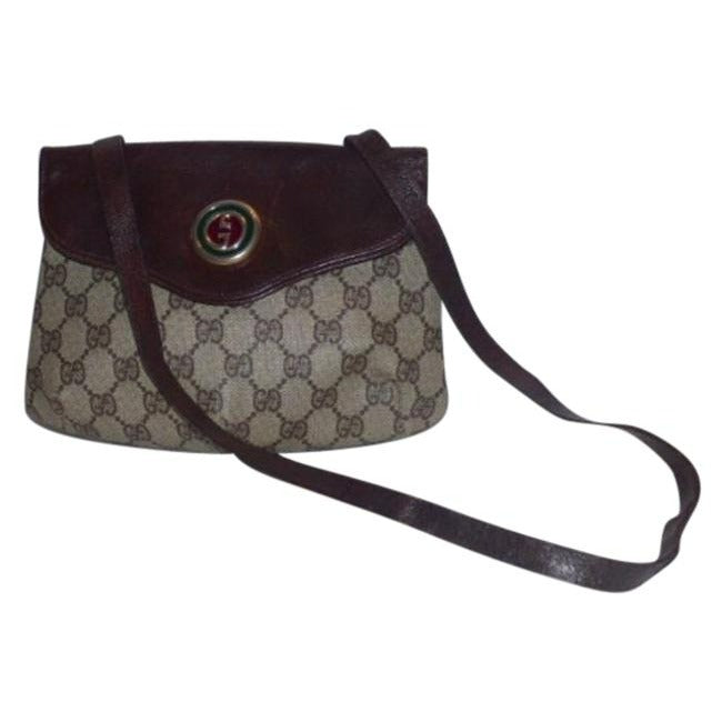 Gucci Vintage Shades Of Brown Coated Canvas With Large G Logo Leather