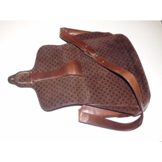 For sale is a unique, Gucci, rare, mod, brown, 'squared' G logo in suede & leather, single strap, envelope top, large shoulder bag with equestrian accents! It is a unique style that would be a great used as your signature brown purse!