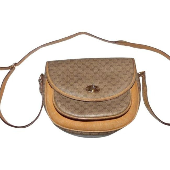 Gucci Vintage Shades Of Browns Small G Logo Print Leather Coated Canvas Cross Body