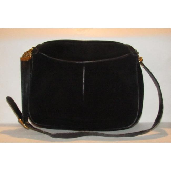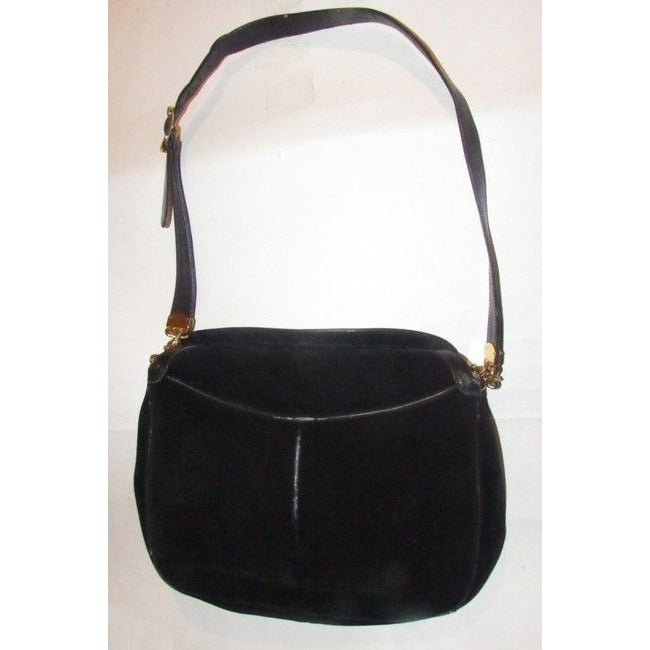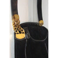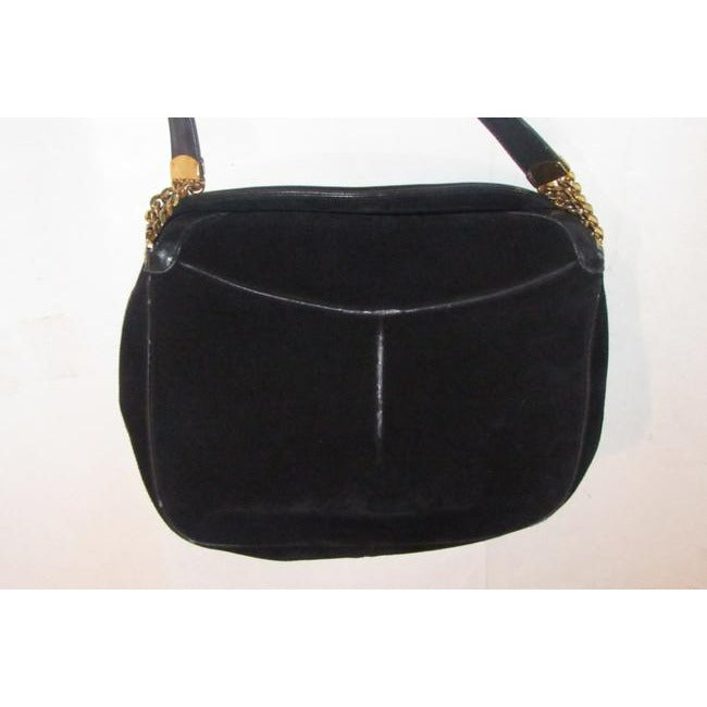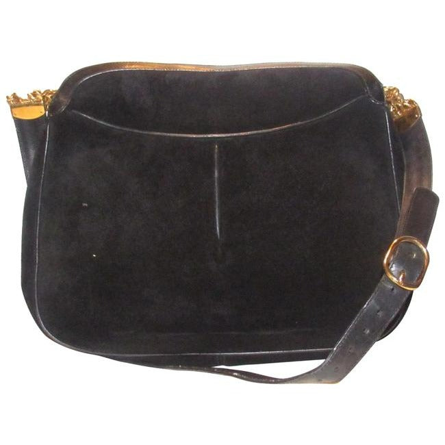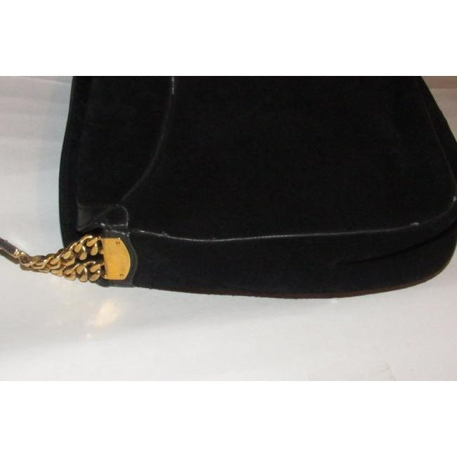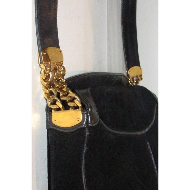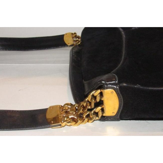 Gucci Vintage Shoulder Black Suede And Leather With Gold Chain Accents Hobo Bag