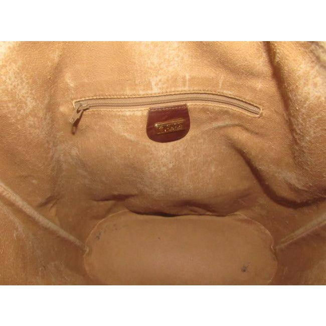 The interior is lined with beige felt like material. The lining is very clean and inside, there is one main compartment with a zip close pocket. It has all of the details an authentic Gucci should, like stamped hardware, and serial numbers- see pictures. It has a classic look that will never go out of style. It'd be a fantastic addition to any collection!