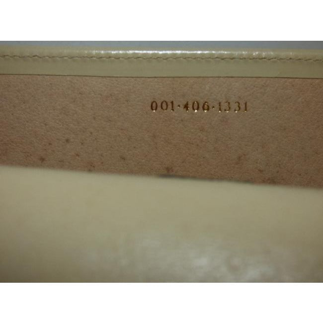 On the interior there is one large compartment with a back zipper pocket! The lining in this purse is leather and could use a cleaning. The purse has a serial number of 001.406.1331.