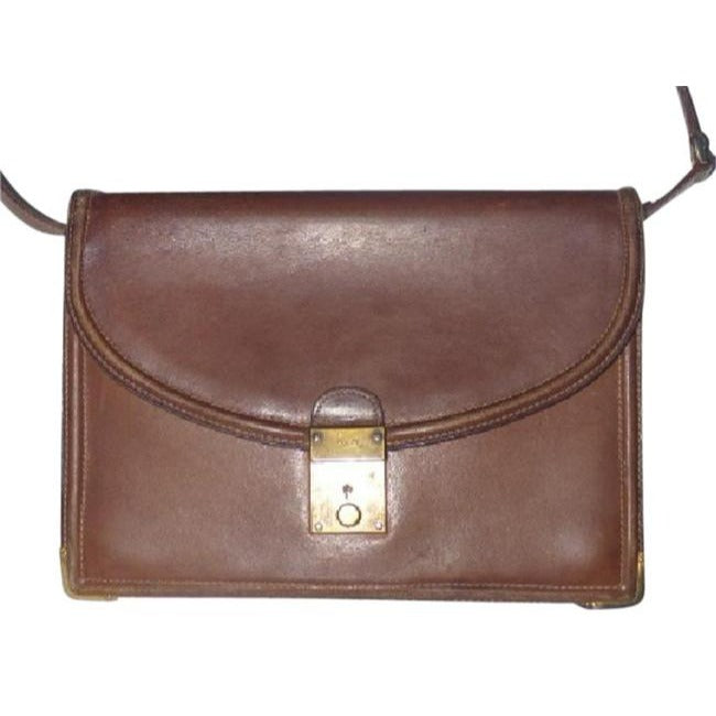 For sale is a Gucci, 1960's mod, medium brown leather, two-way style- shoulder bag with a removable strap to become a clutch! It has gold hardware at the corners and clasp and multiple compartments that make the bottom expand when full! This is a unique 1960's mod Gucci that will be the only brown purse you will need!
