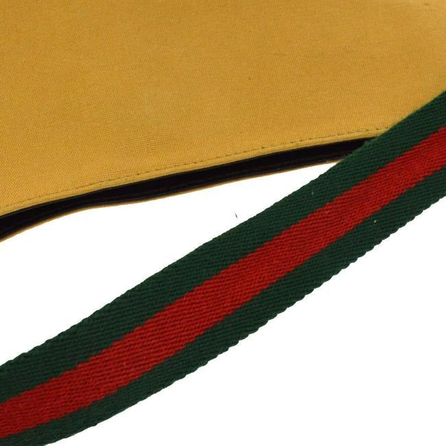 Gucci Vintage Tan Canvas And Brown Leather With A Red Green Striped Strap Hobo