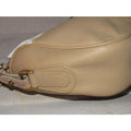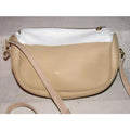 For sale is a vintage, Gucci, white with camel leather, crescent shaped, top zip, cross body/shoulder bag with gold hardwaree! This is a quality classic from Gucci that will be the only beige purse you will need!
