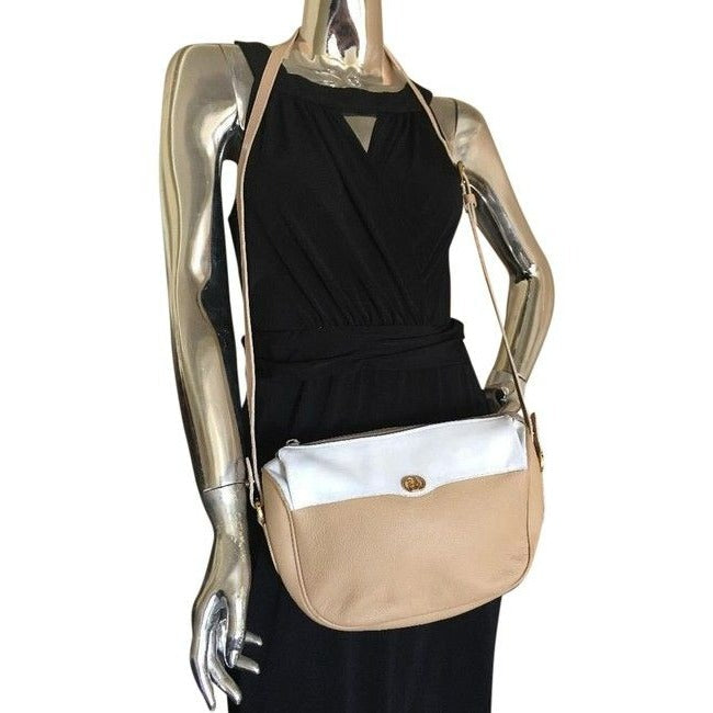 Gucci Vintage White And Camel Leather Cross Body Bag