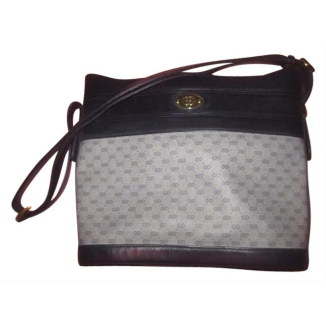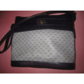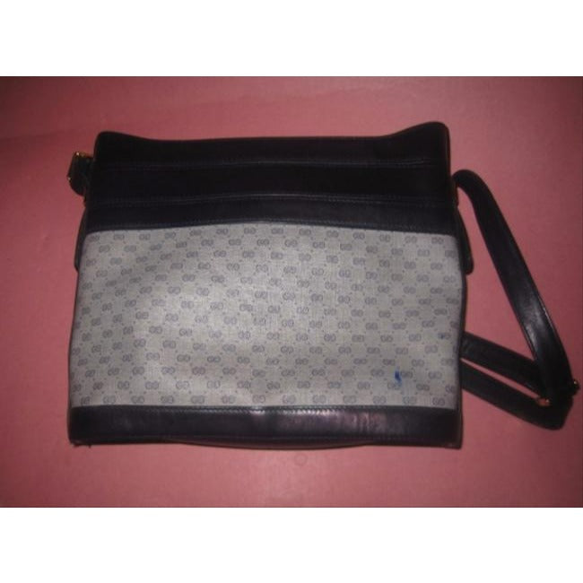Gucci Vintage White Coated Canvas With Navy Small G Logo Print And Leather