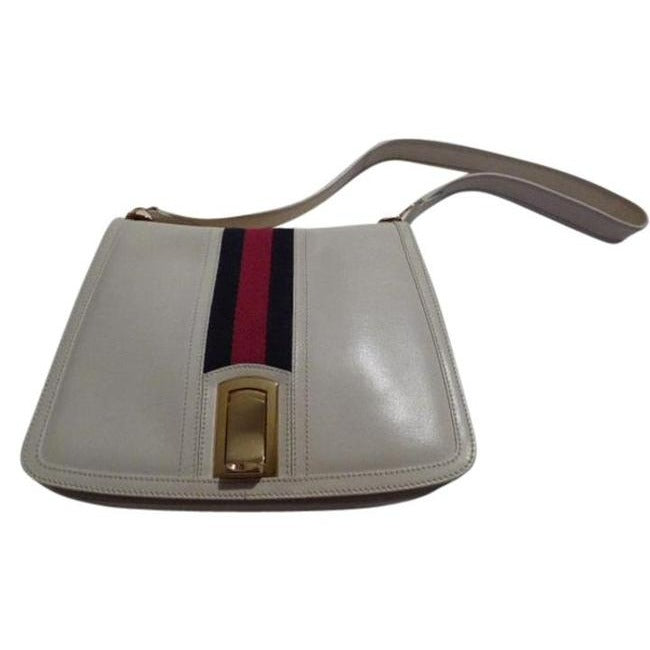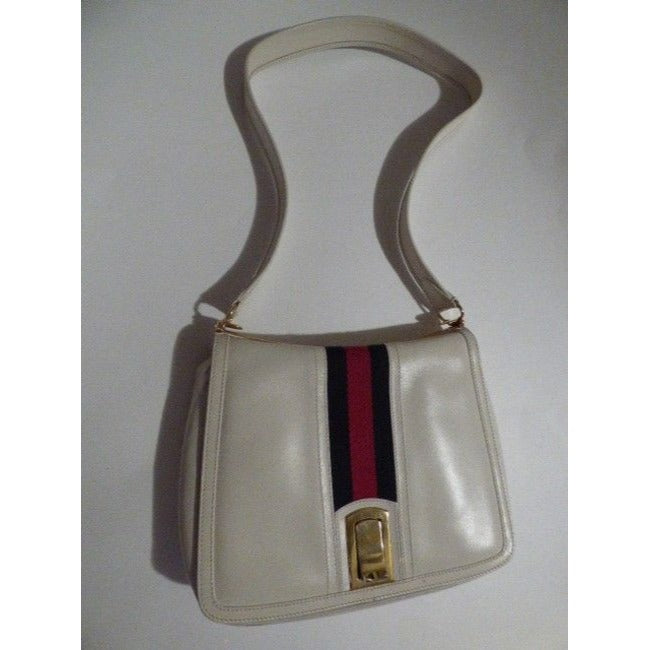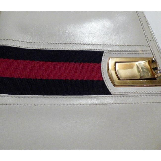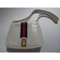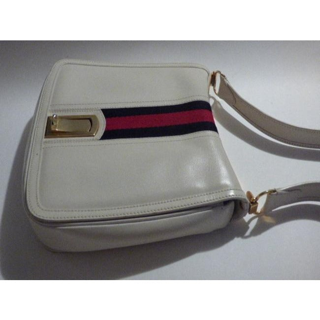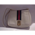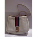 Gucci Vintage White Leather With Wide Red Blue Striped Center Hobo Bag