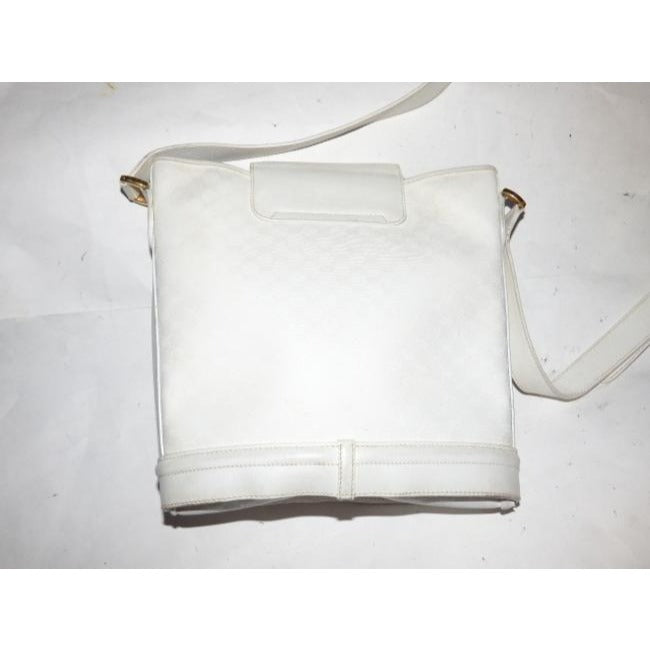 Gucci White Micro Logo Print Leather Horseshoe Bucket Bag
