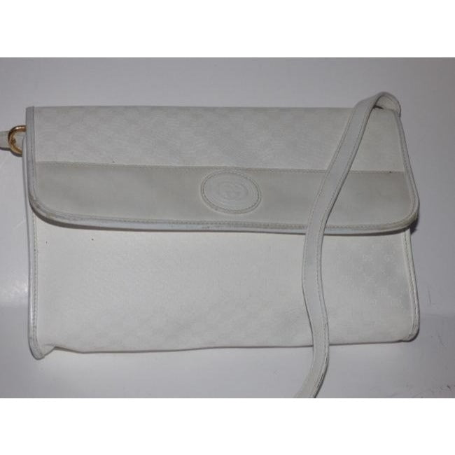 Gucci Vintage White Small G Logo Coated Canvas Leather Cross Body