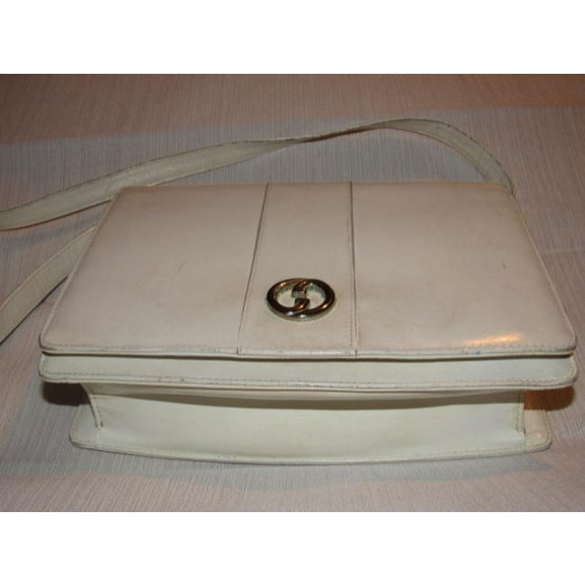 Gucci Vintage White With Chrome Accents Leather Shoulder Bag