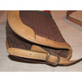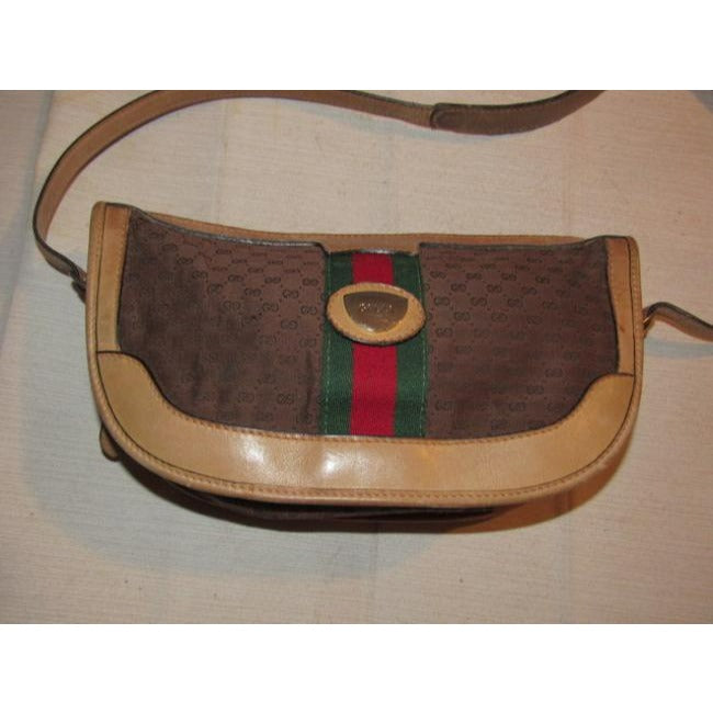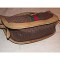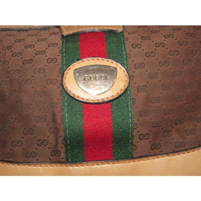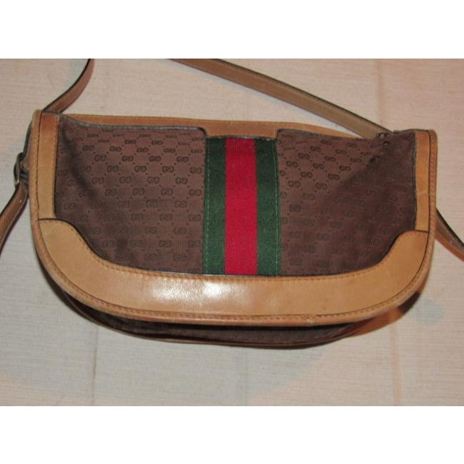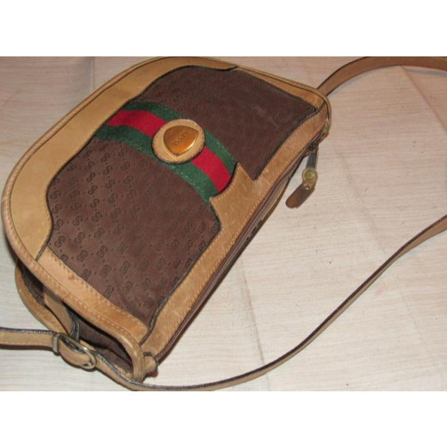 For sale is a vintage, Gucci, brown micro Guccissima print canvas & camel leather, crescent shaped shoulder bag with red and green center stripe! A quality classic from Gucci that will be the only brown purse you will need!
