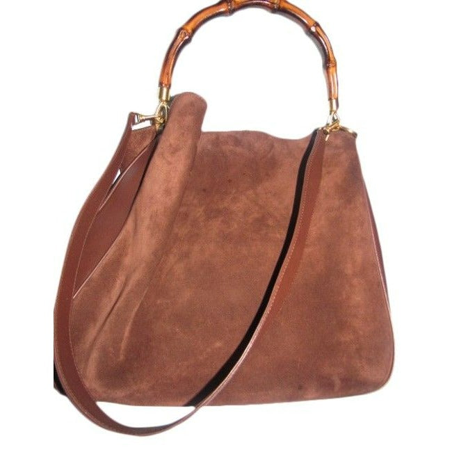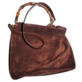 Gucci W Suede Leather Sarah Flip Top Two Way Handle And Removable Strap Bamboo Hobo