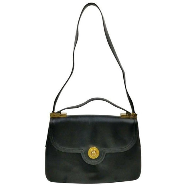 Gucci W Two Way Vtg Kelly Removable Strap Black Leather Cross Body Bag