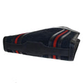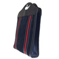 For sale is an early, Gucci, Ophidia- like, navy blue suede and leather, RARE, large, structured tote with two, red and blue Sherry stripe accents at the center, two hard leather, 'punch' or 'port' hole handles, and an open top! This is a unique, vintage bag from Gucci, perfect for any time of year!