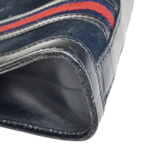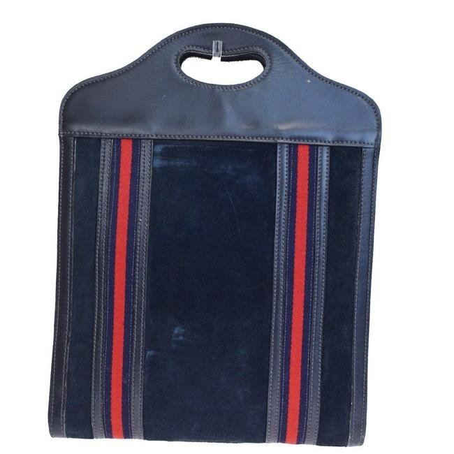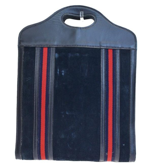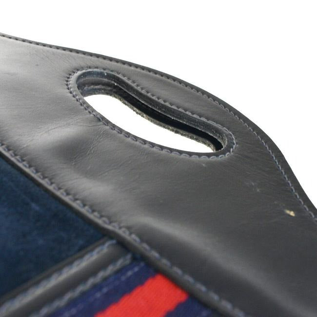 Gucci W Vintage Suedeleather Top Handle Punch Hole Bluerednavy Sherry Stripes Suede And Leather Tote