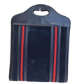 This tote is very similar to the vintage inspired styles Gucci has brought back with its new Ophidia and Rajah tote styles! The bag is a structured, 'punch' or 'port' hole handle, tote style bag by GUCCI. It is made from navy blue suede as the body and navy blue leather giving it the structured frame with two, red and blue Sherry stripe accents at the center. It has an open top without a closure. The body is in mint condition!