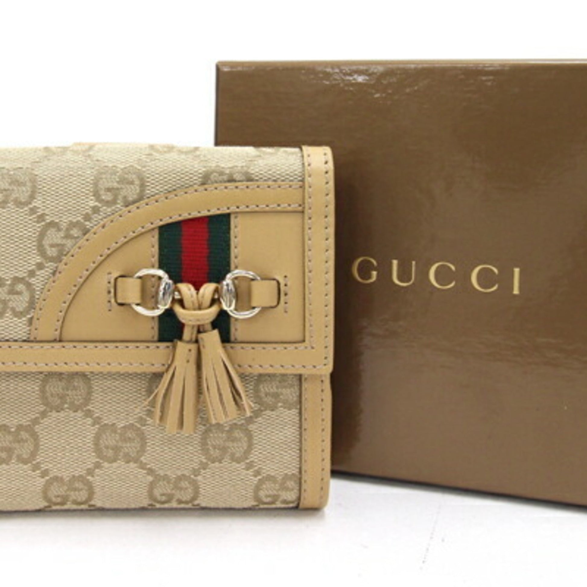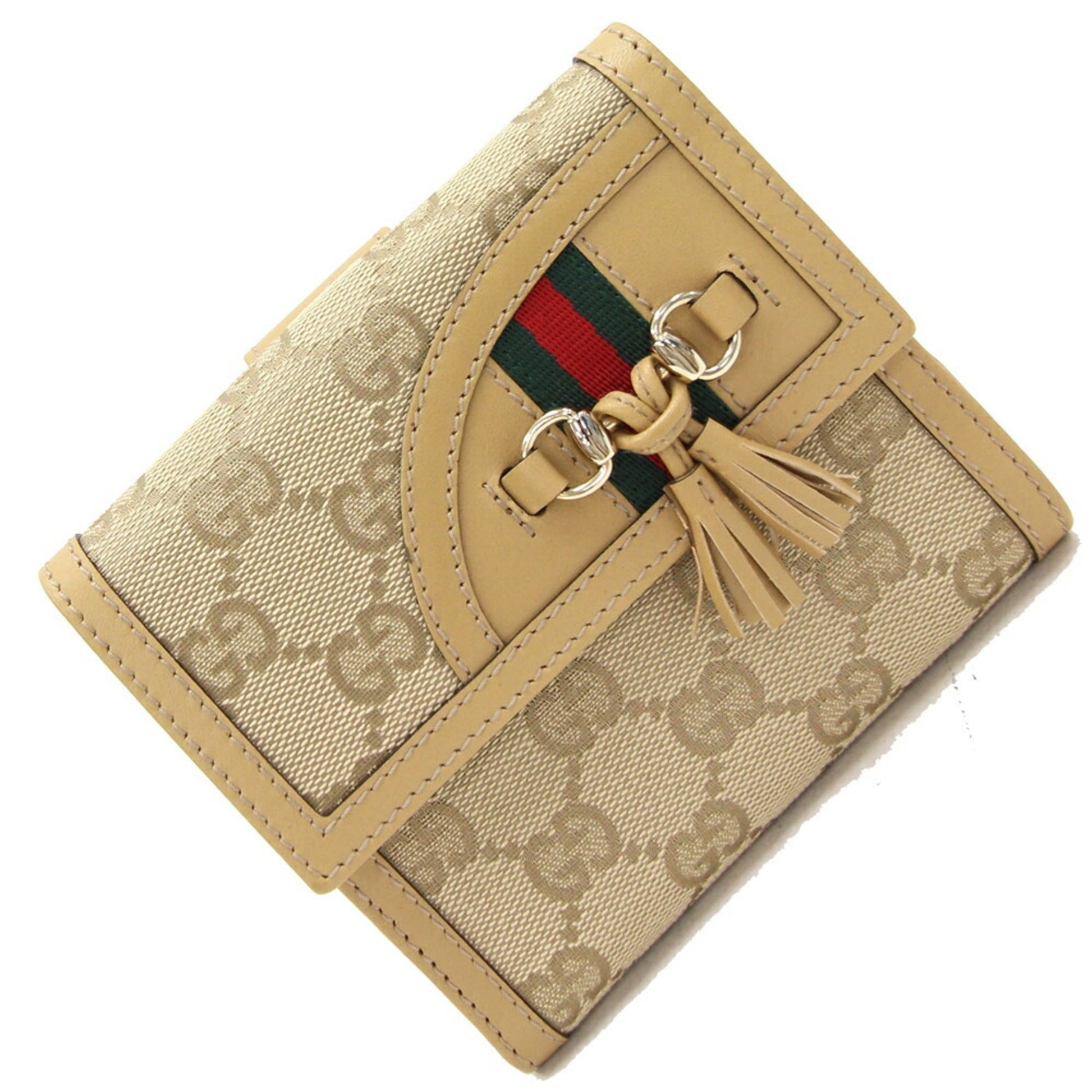 GUCCI W Wallet GG 233053 Beige Canvas Leather Ladies Sherry Line