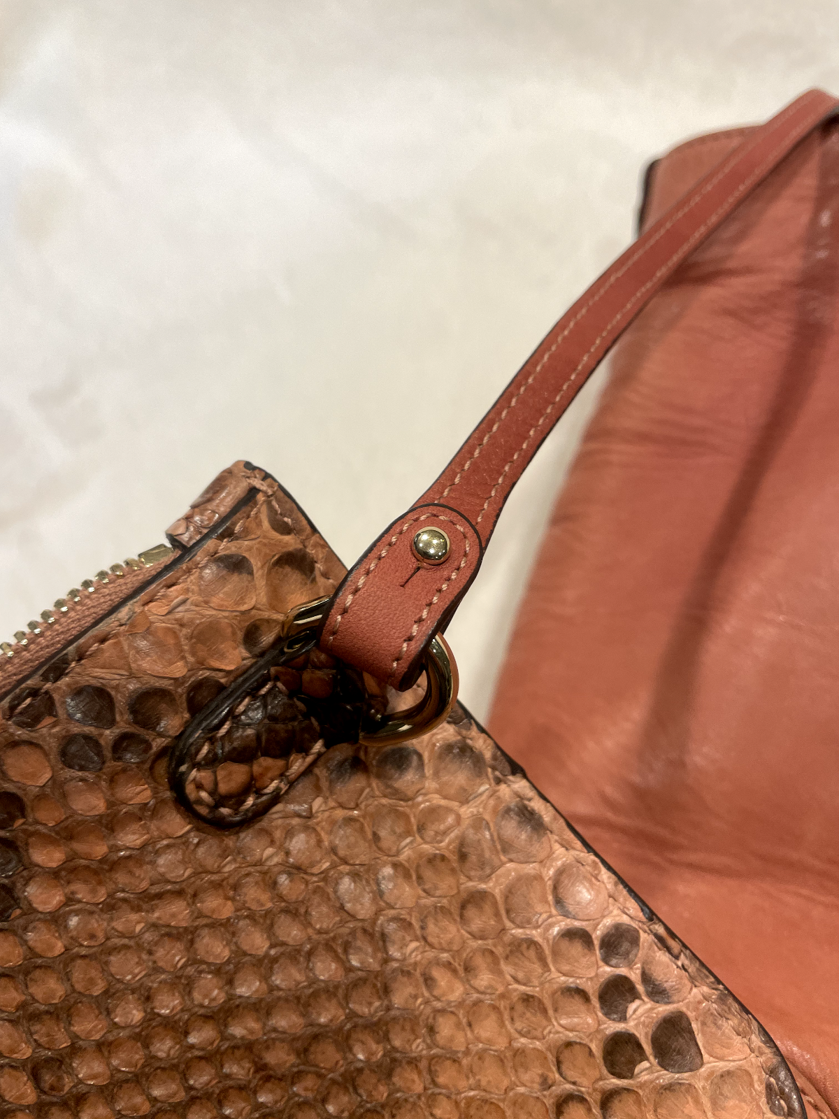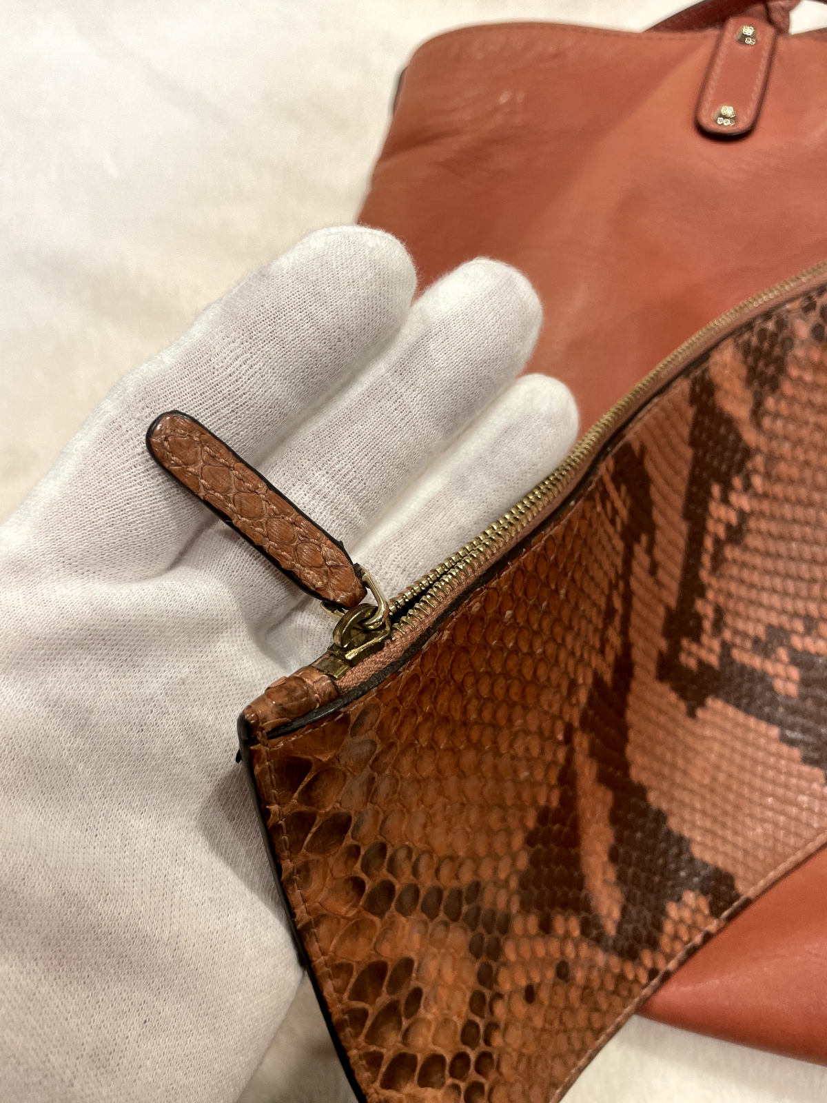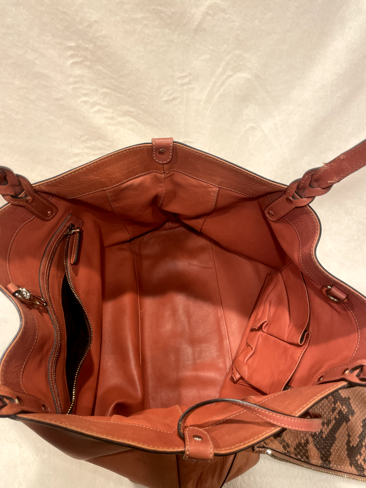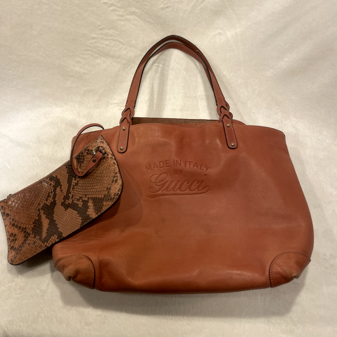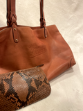 Gucci Brown Craft Leather Tote w Detachable Python Wallet