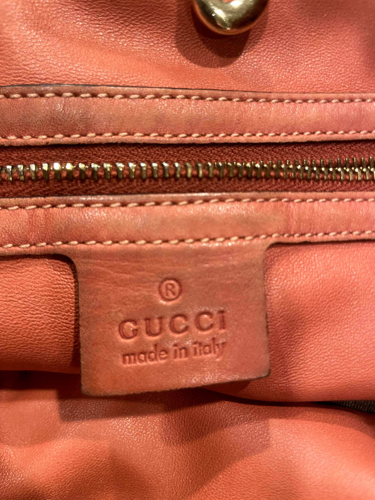 Featuring a 'Made in Italy by Gucci' logo embossed on the side, this extra large brown craft tote from Gucci is a must-have. It includes two straps, a python leather detachable wallet, and gold tone hardware for an unparalleled style. With its unique design, this bag will be the only brown purse you need.
