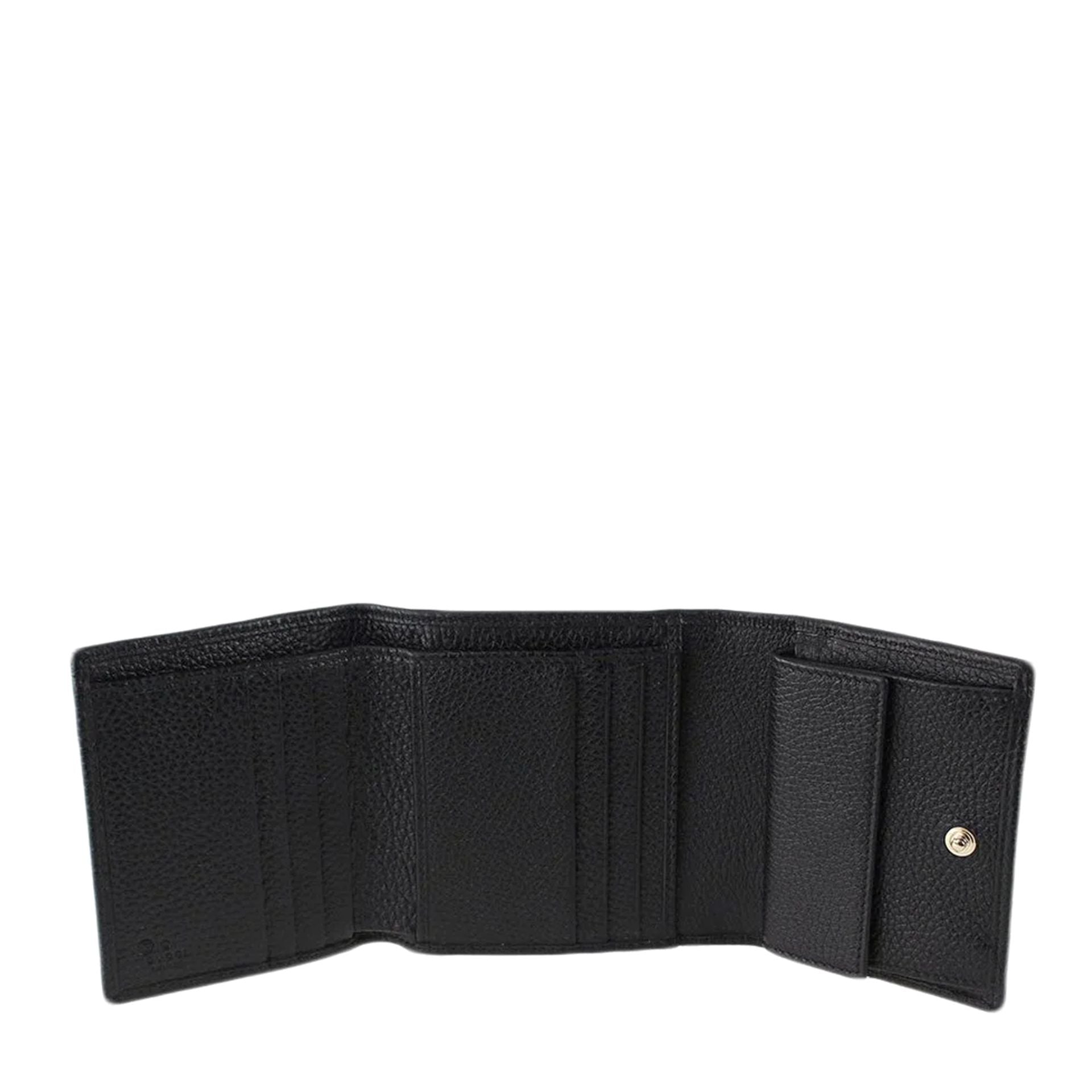 This Gucci Wallet is perfect for the modern woman. Crafted from luxurious leather, it features a metallic fastening and a spacious interior. Inside, you'll find a credit card holder, documents compartment and a coin purse. It measures 11 cm in width, 8.5 cm in height and 3 cm in depth. It comes with its original packaging.