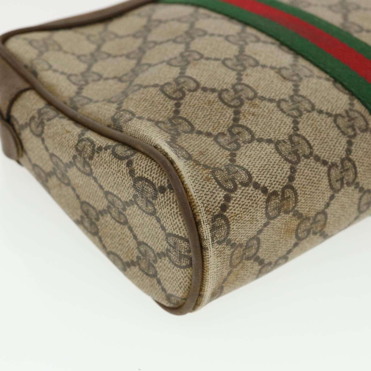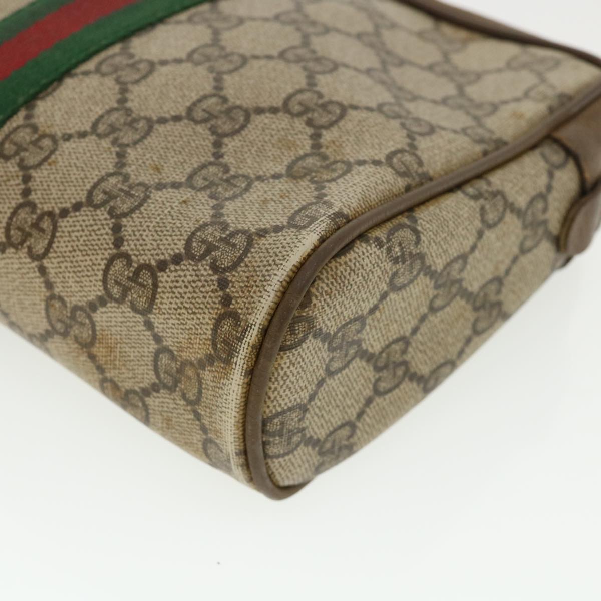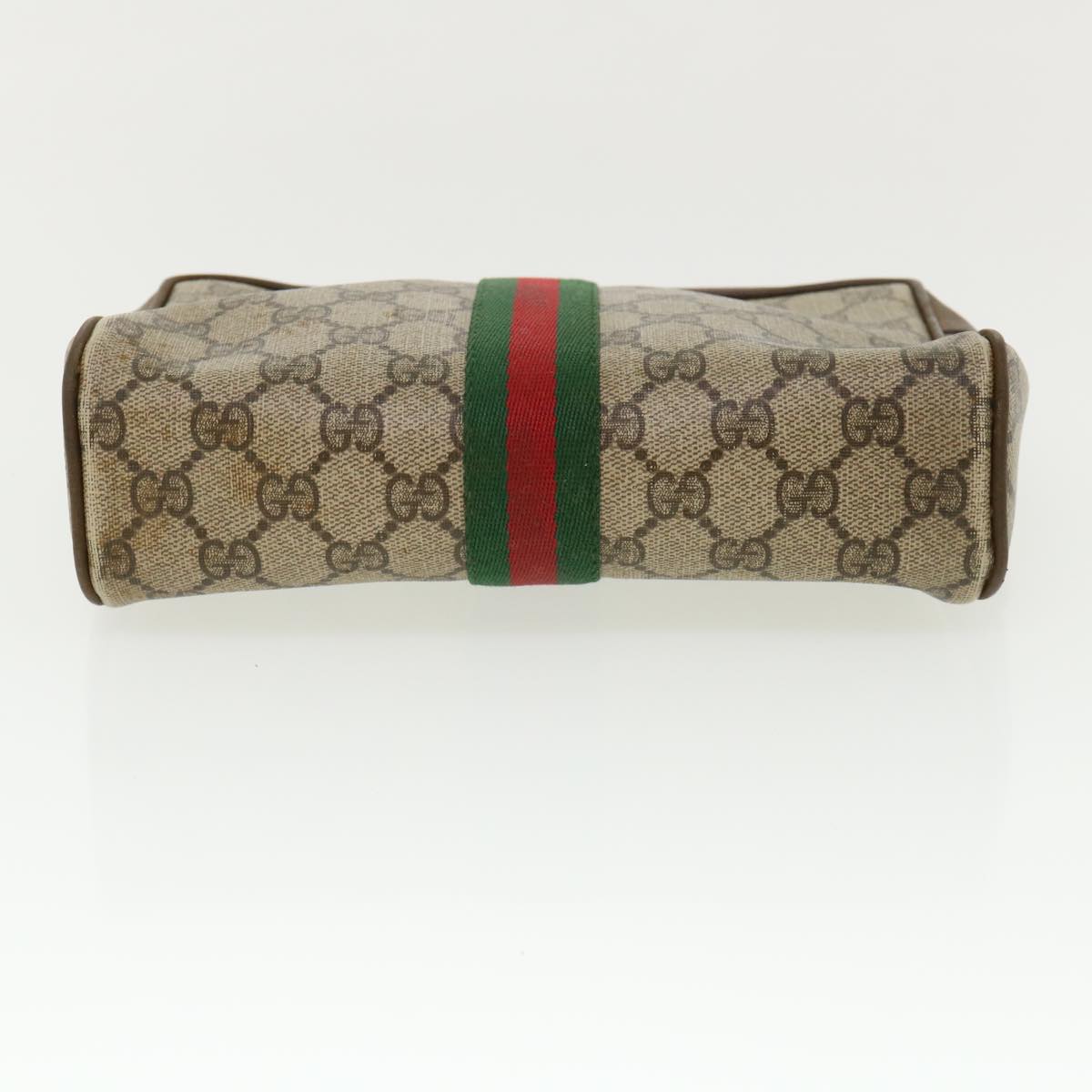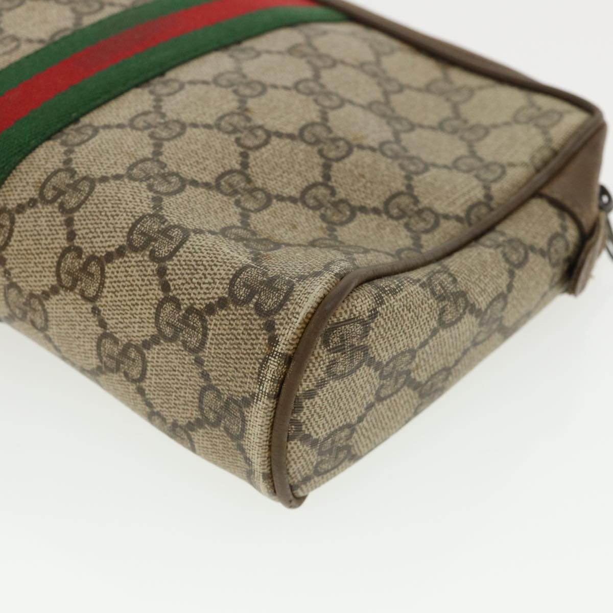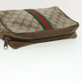 GUCCI Web Sherry Line GG Canvas Clutch Bag PVC Leather Beige Green 37094