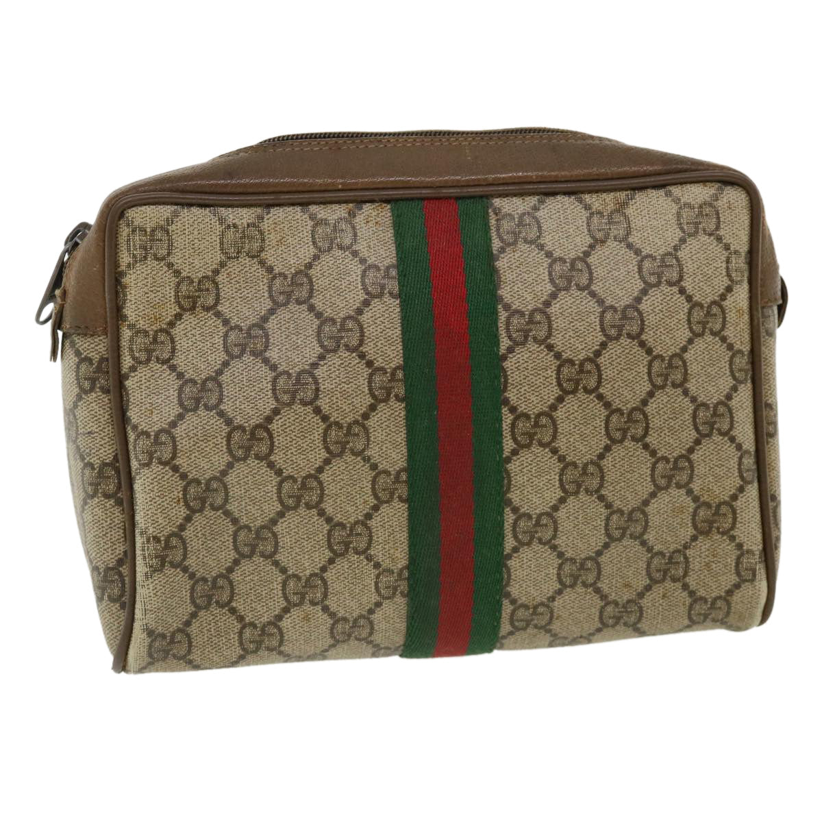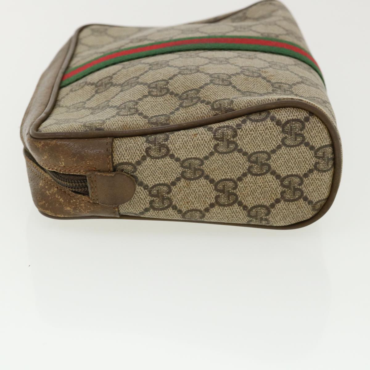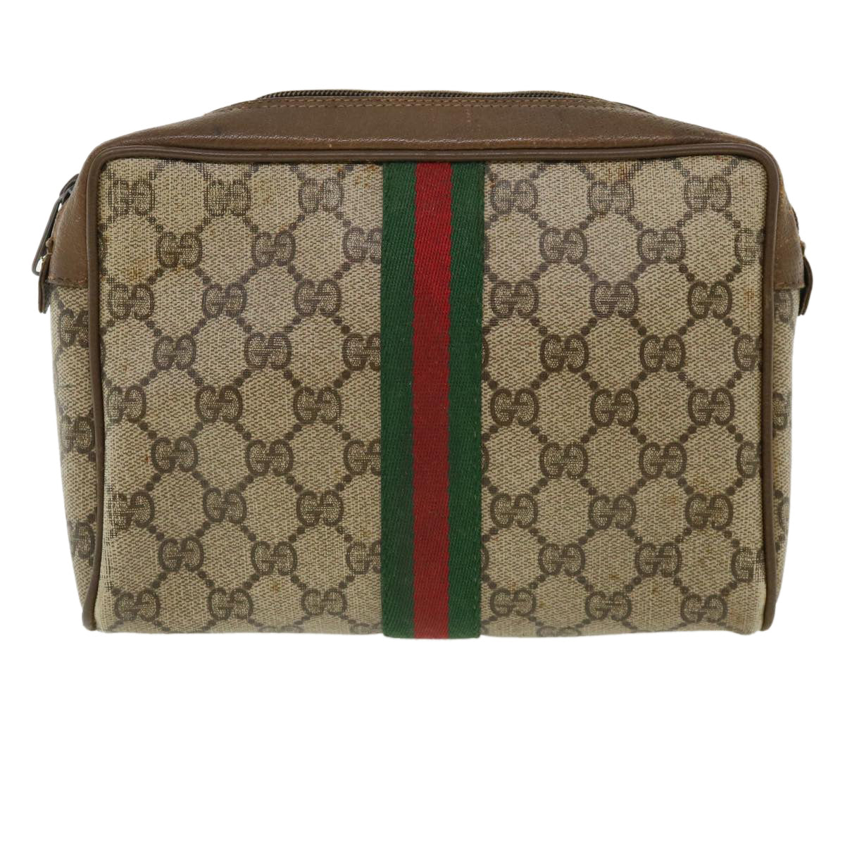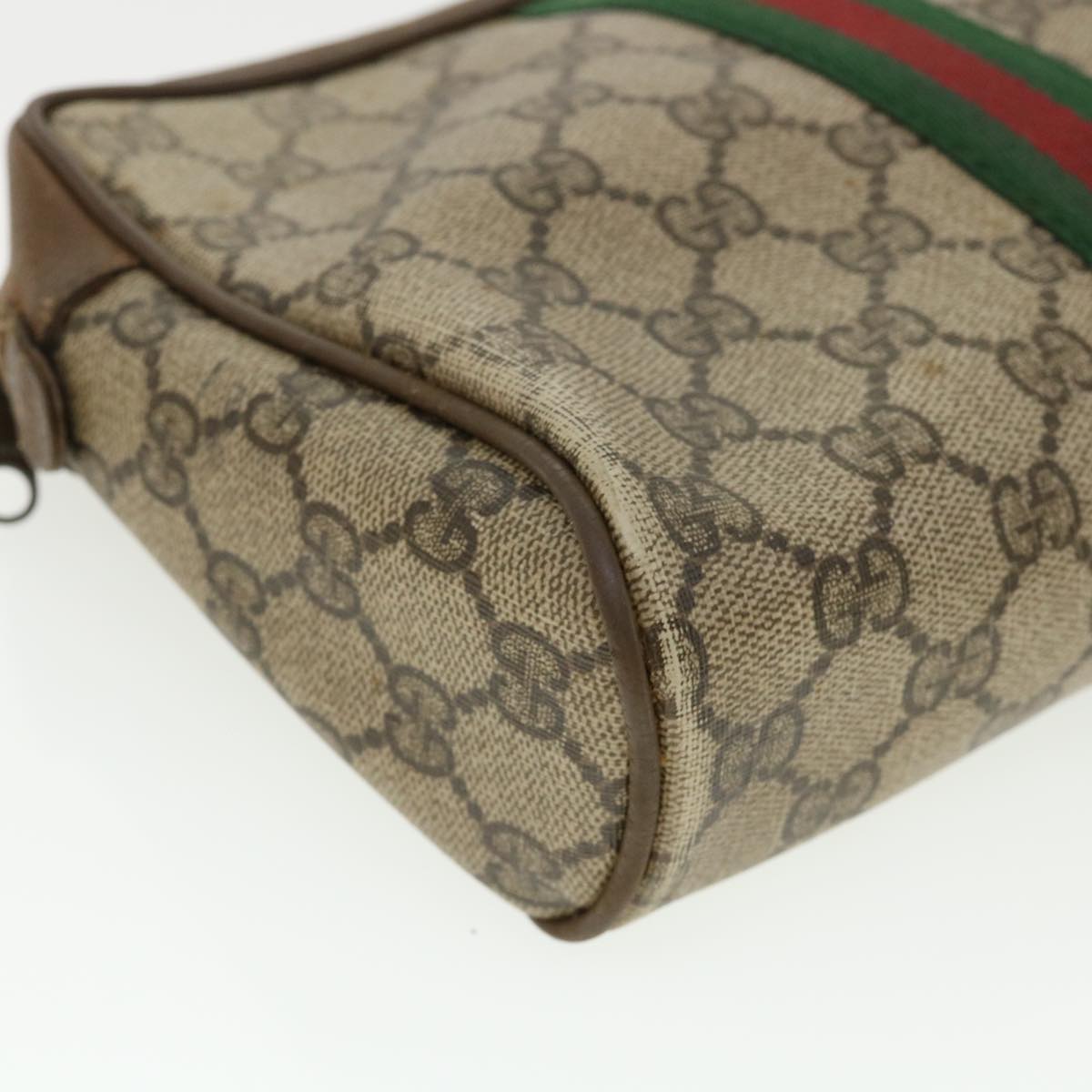 GUCCI Web Sherry Line GG Canvas Clutch Bag PVC Leather Beige Green 37094