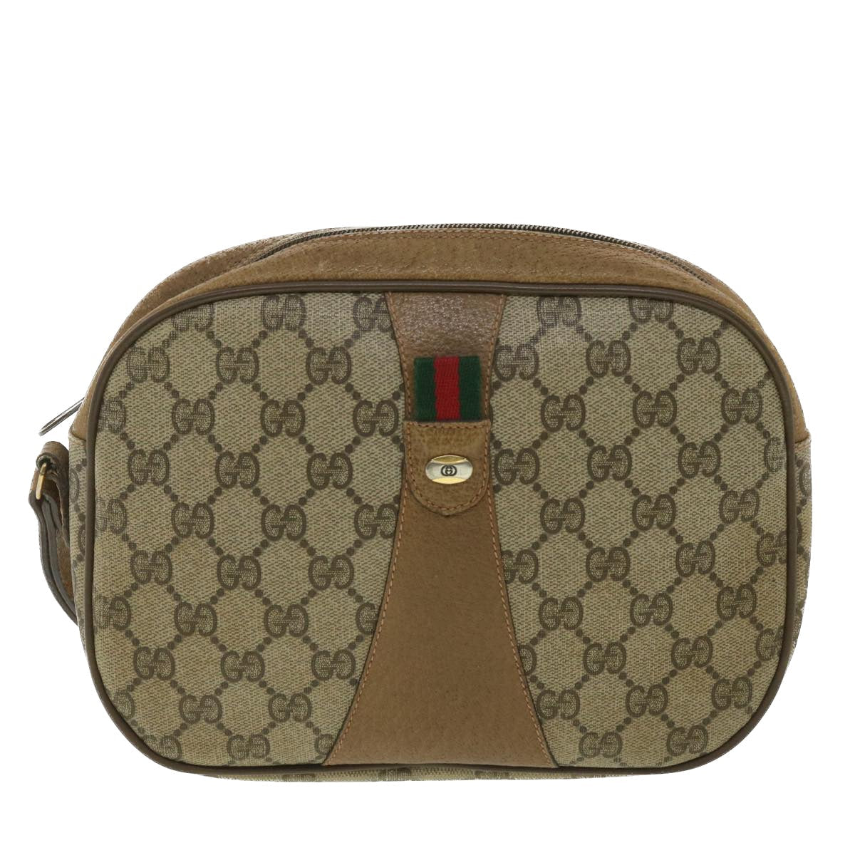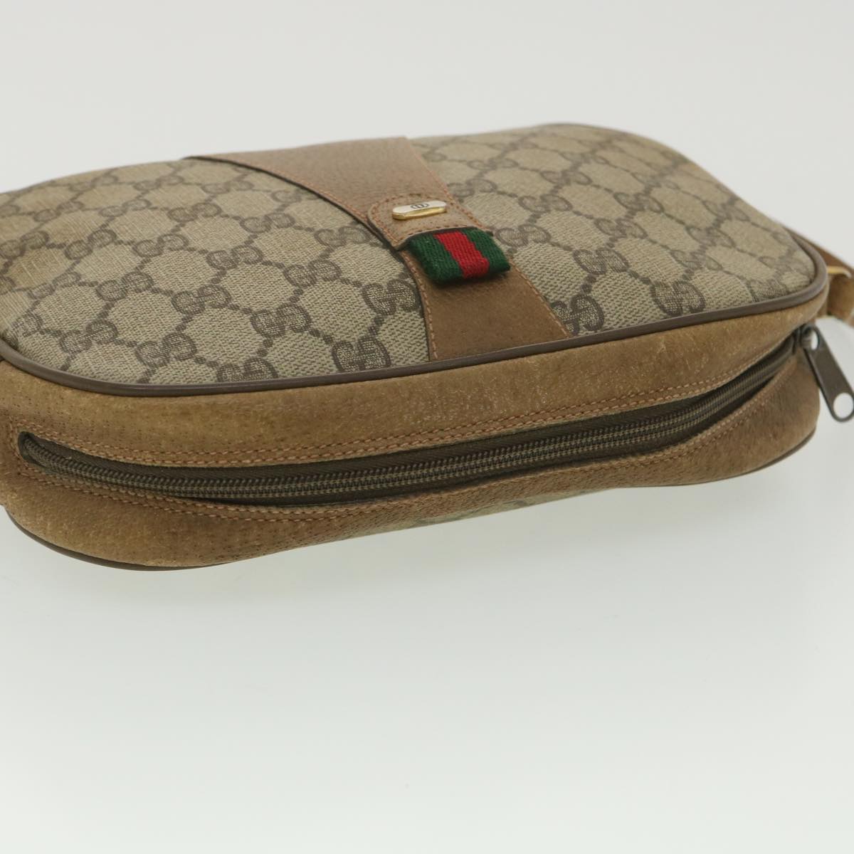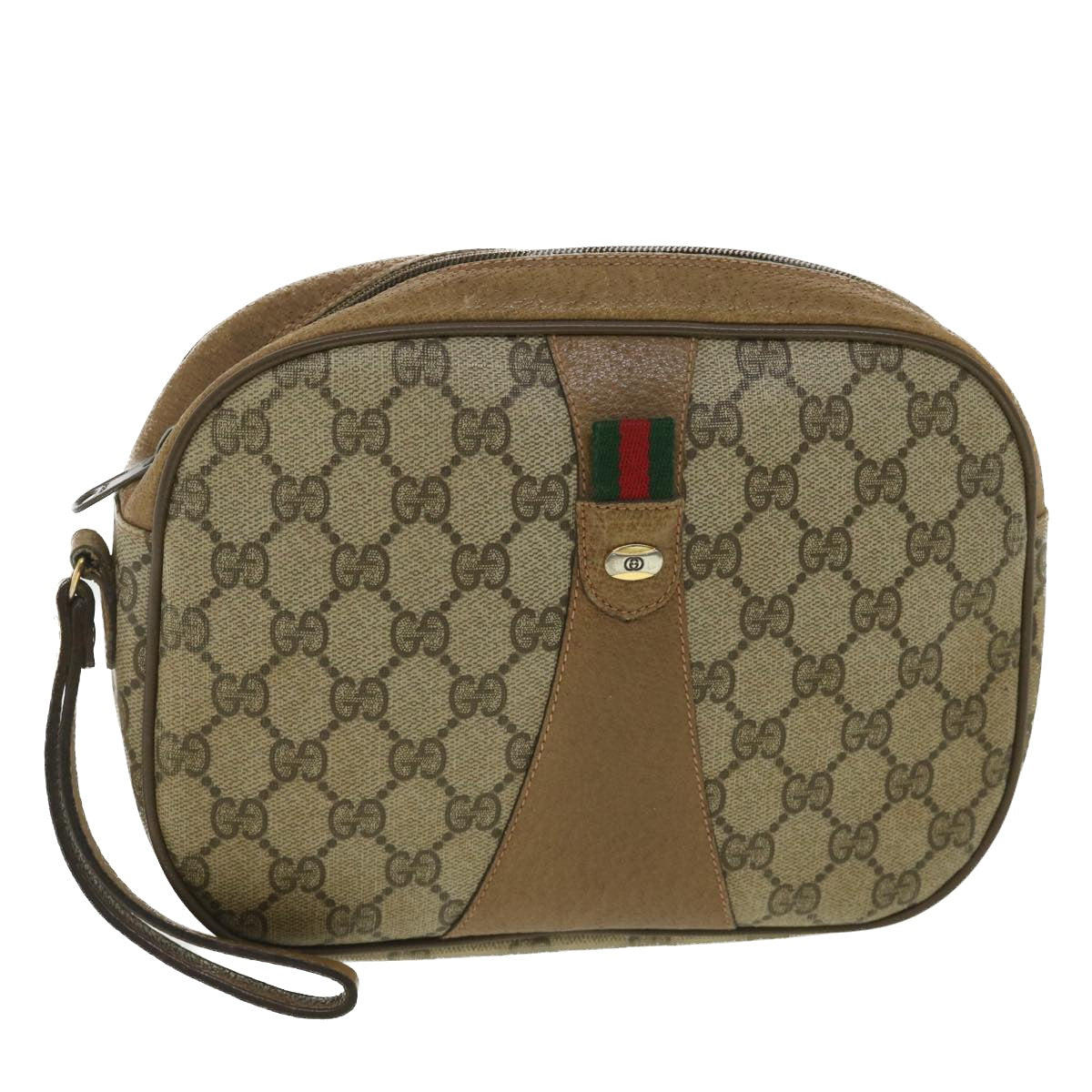 GUCCI Web Sherry Line GG Canvas Clutch Bag PVC Leather Beige Green 89 36428