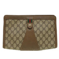 GUCCI Web Sherry Line GG Canvas Clutch Bag PVC Leather Beige Green th3181