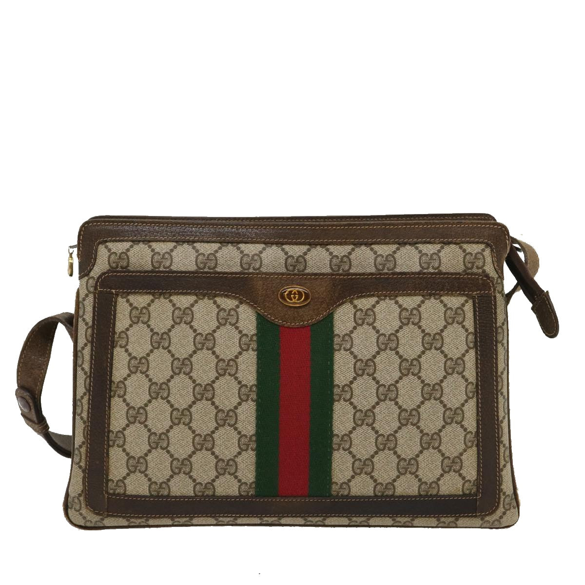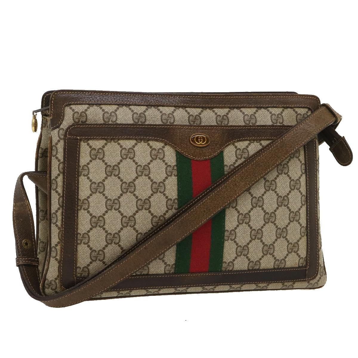 GUCCI Web Sherry Line GG Canvas Shoulder Bag Beige Red Green bs1024