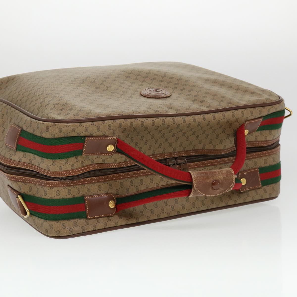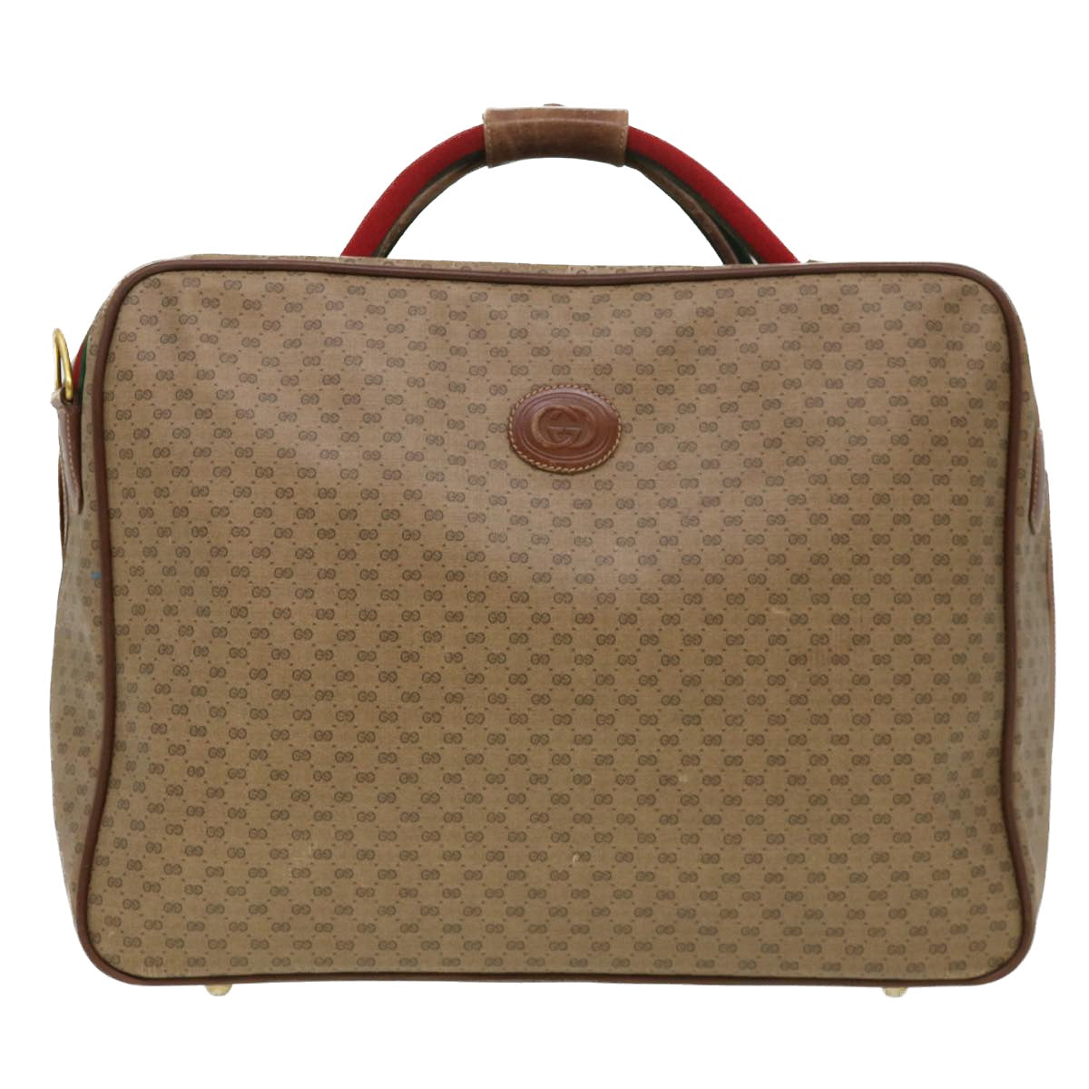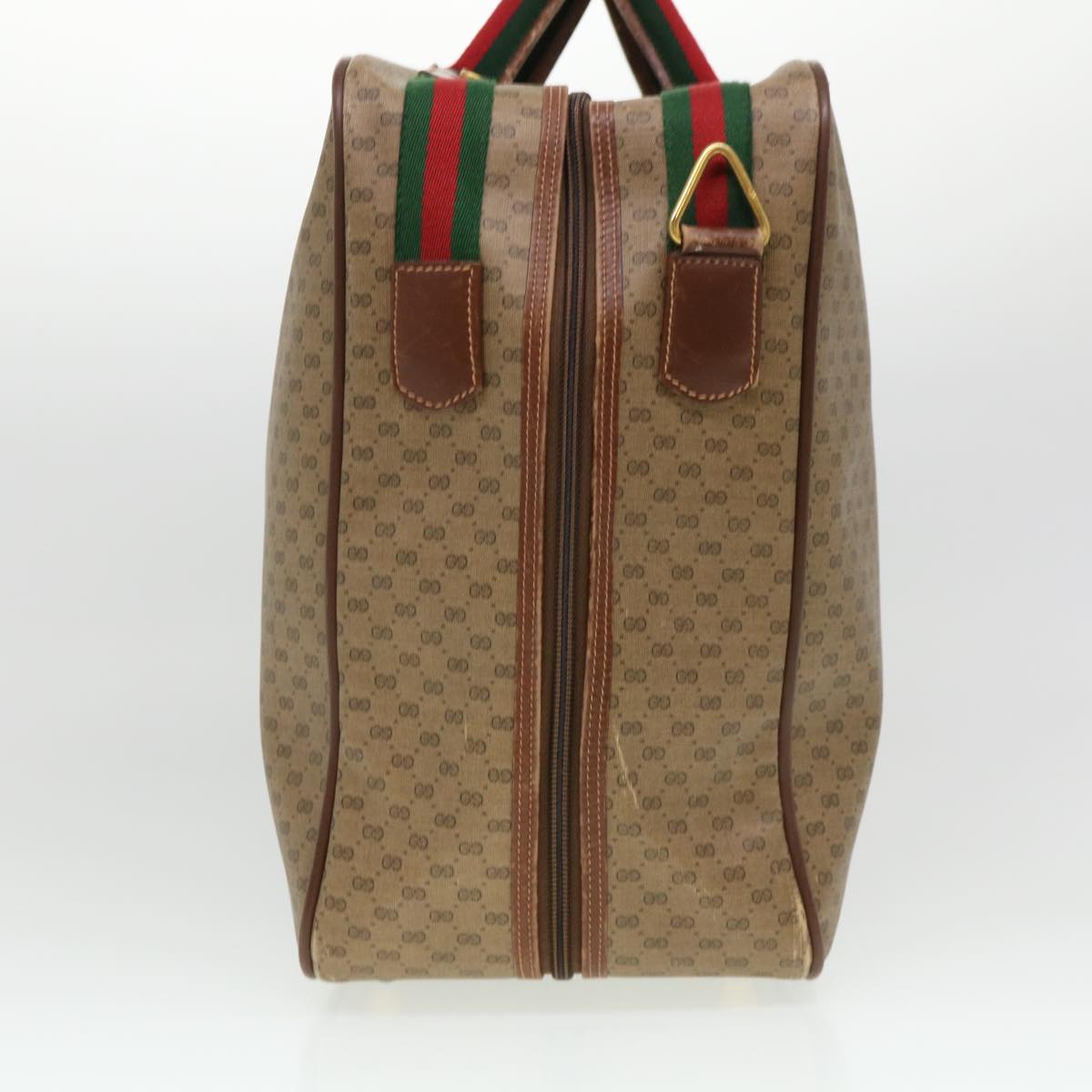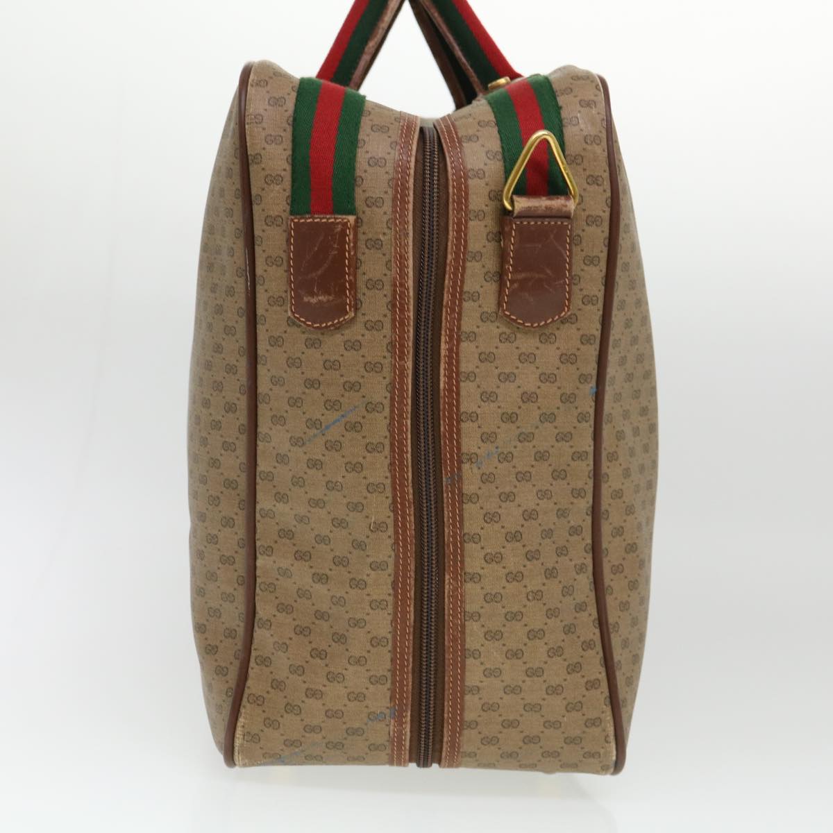 GUCCI Web Sherry Line Micro GG Canvas Boston Bag PVC Leather Brown 38417