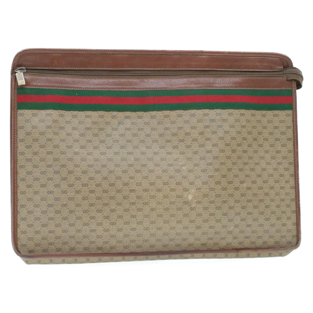GUCCI Web Sherry Line Micro GG Canvas Clutch Bag Beige Red Green rd390