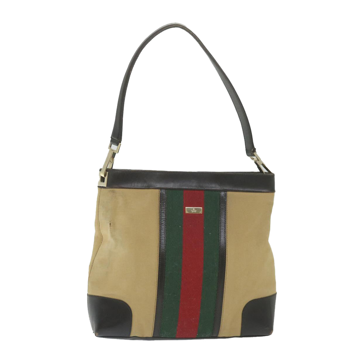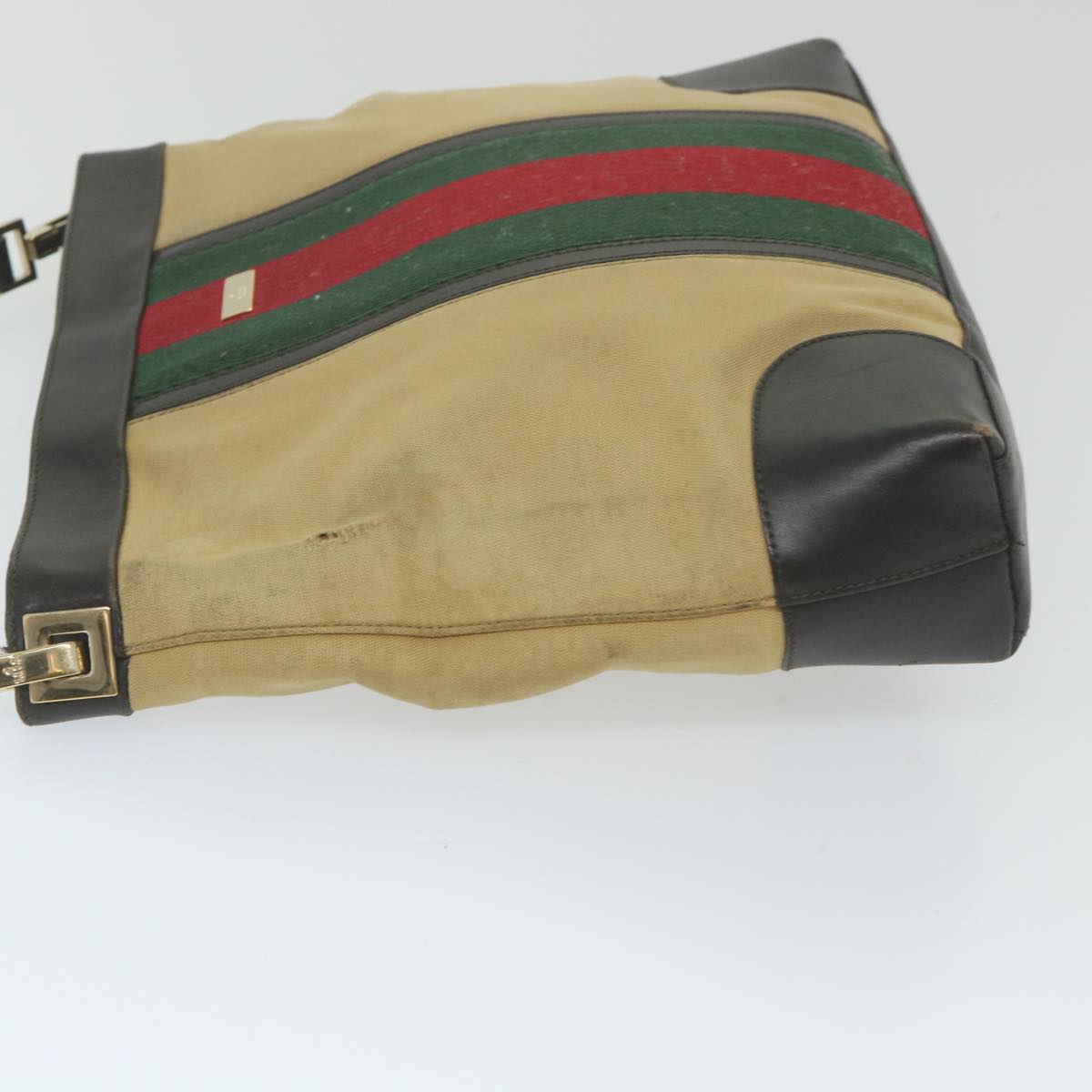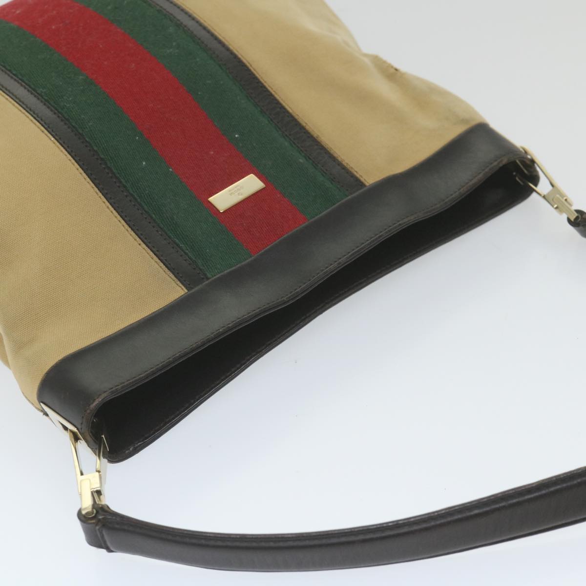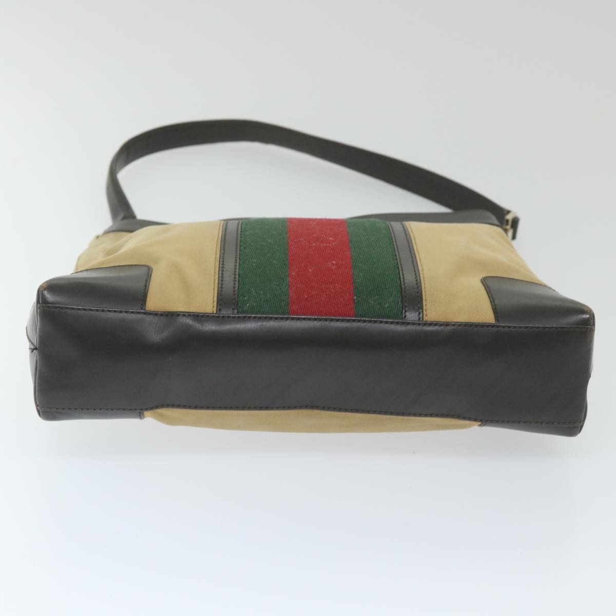 GUCCI Web Sherry Line Shoulder Bag Canvas Beige Red 001 4231 1705 Auth 59714