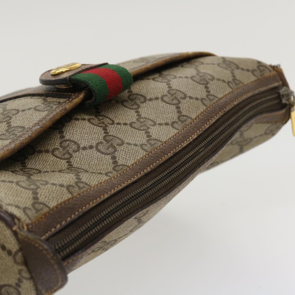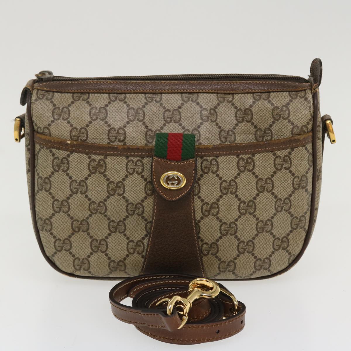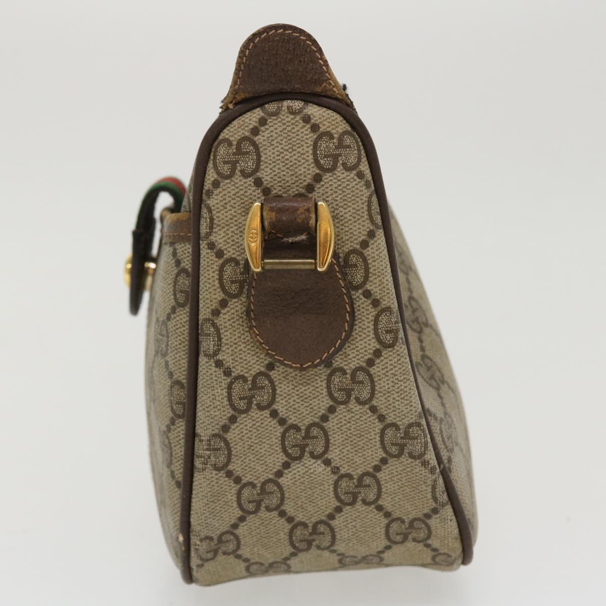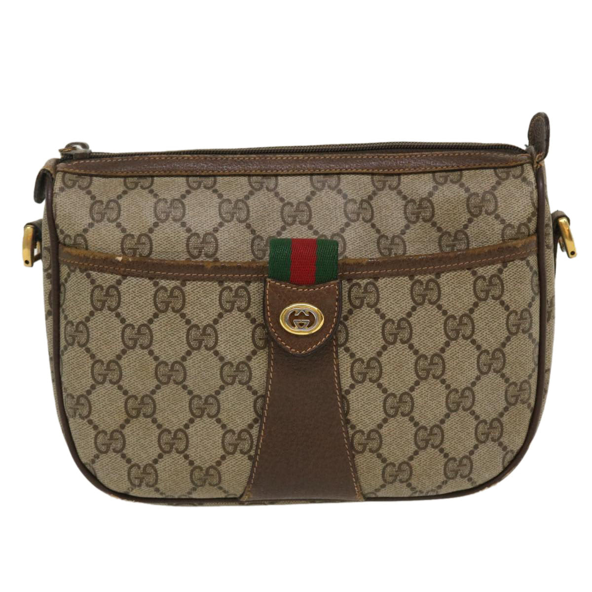 GUCCI Web Sherry Line Shoulder Bag PVC Leather Beige Green Red 36081