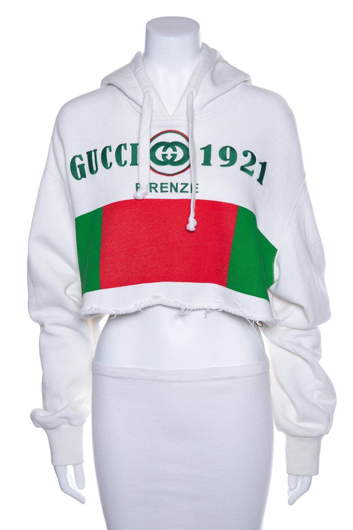 Gucci White "1921" Cropped Sweatshirt SZ M