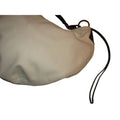 The bag is a large, hobo style purse. The purse is solid white with black leather at the ends and the hardware is bold gold or brass. The strap is heavy braided black leather giving it a more bohemian look. There is an attached black leather wallet/change purse, too! It is not lined and has one big interior compartment with the attached wallet!