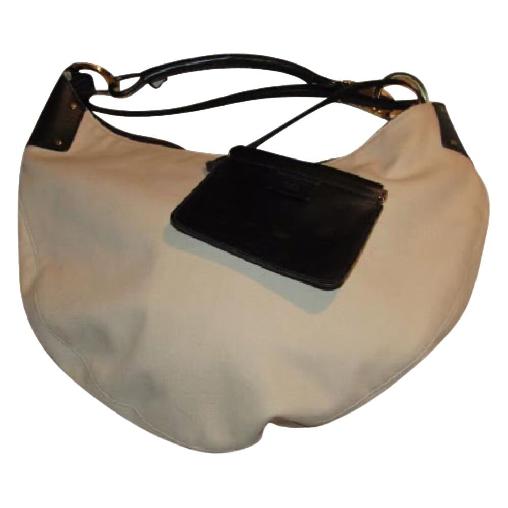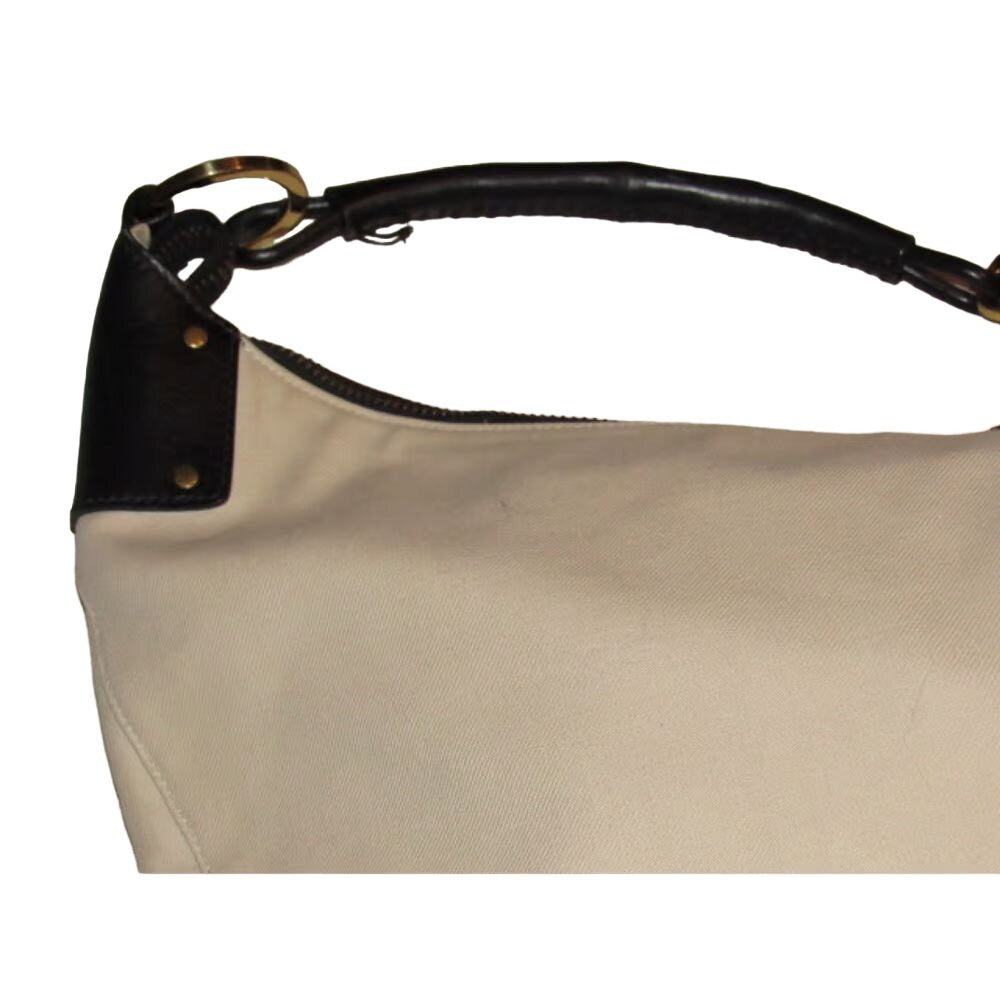 For sale is a Gucci, solid white & black leather, extra large, hobo style purse with a heavy, black leather braided strap with bold gold accents, a removable strap, long leather zip pull, and attached black leather wallet! It is a classic style that would be great used as a purse for everyday or as your go to light neutral bag!