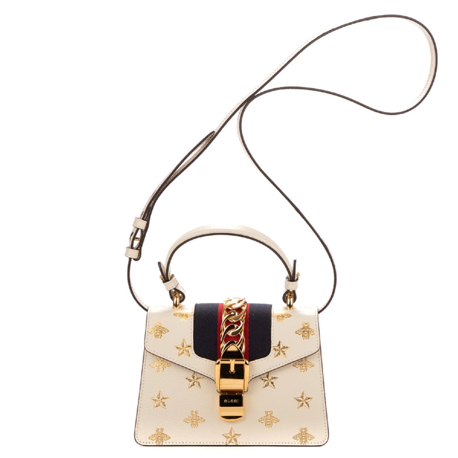 Gucci White Calfskin Mini Sylvie Bee Star Top Handle Bag