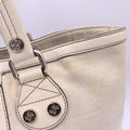 This Tote Is Crafted Of White Canvas With Blue/Red/Blue Signature Striped Detailing.