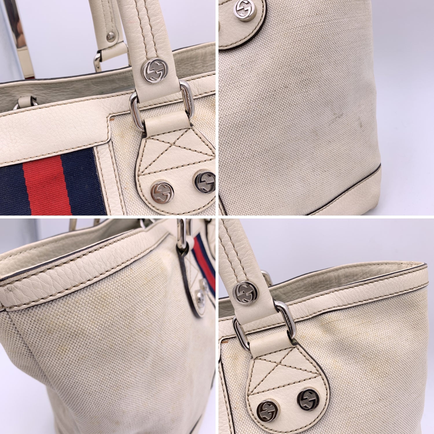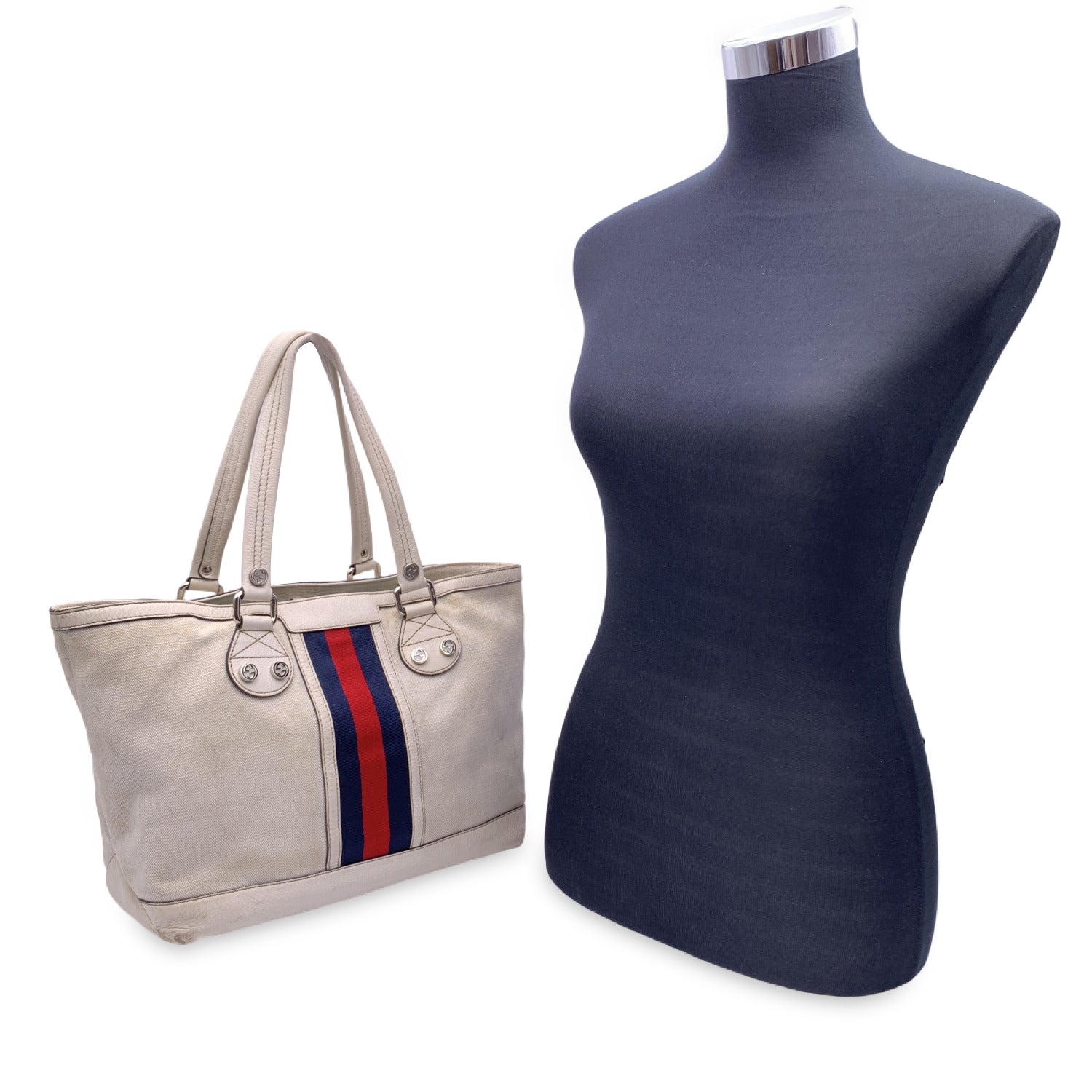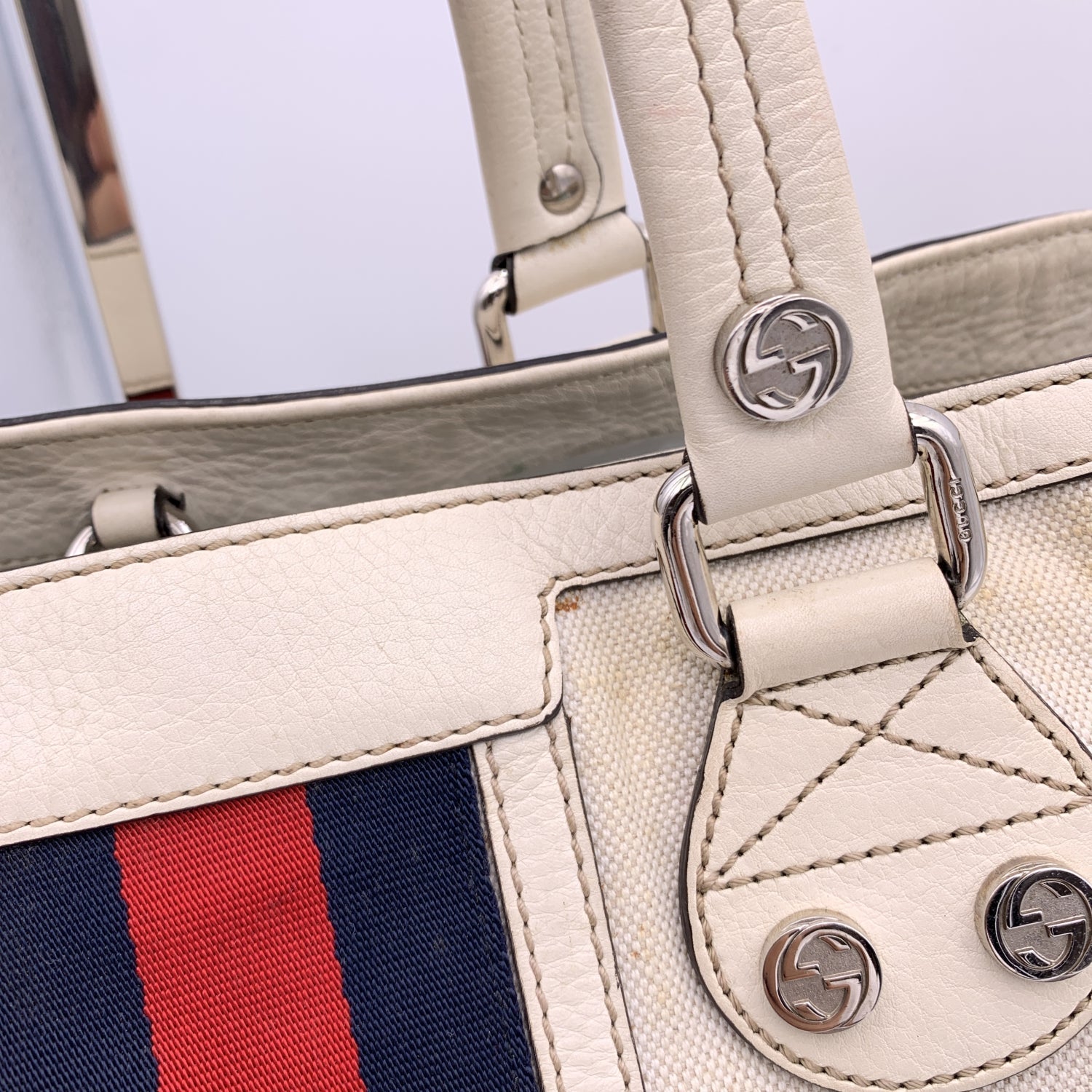 GUCCI White Canvas Web Sunset Tote Shopping Shoulder Bag