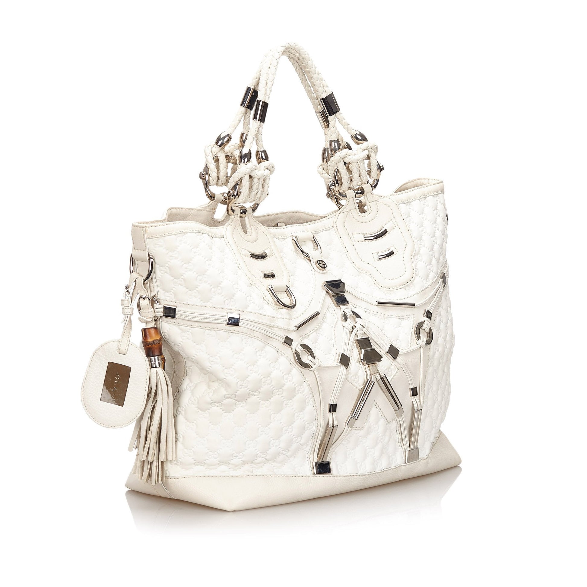 Gucci White Chemical Fiber Fabric GG Techno Horsebit Tote Bag Italy