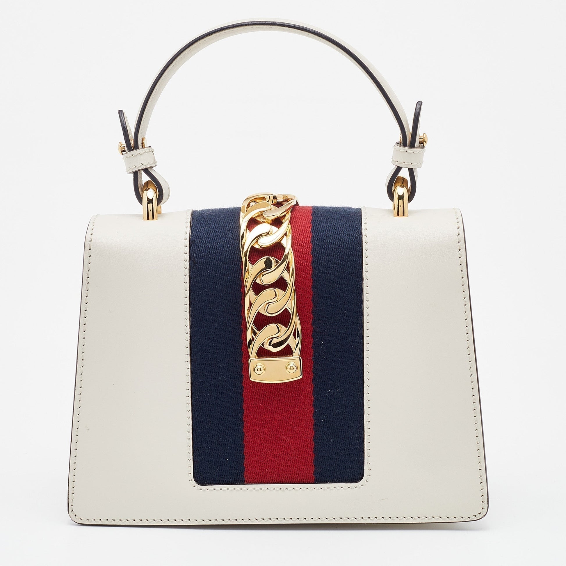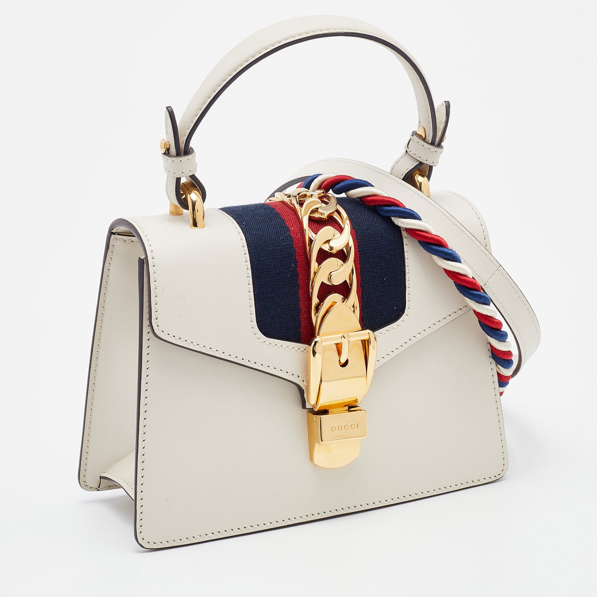 Gucci White Leather Mini Web Sylvie Top Handle Bag