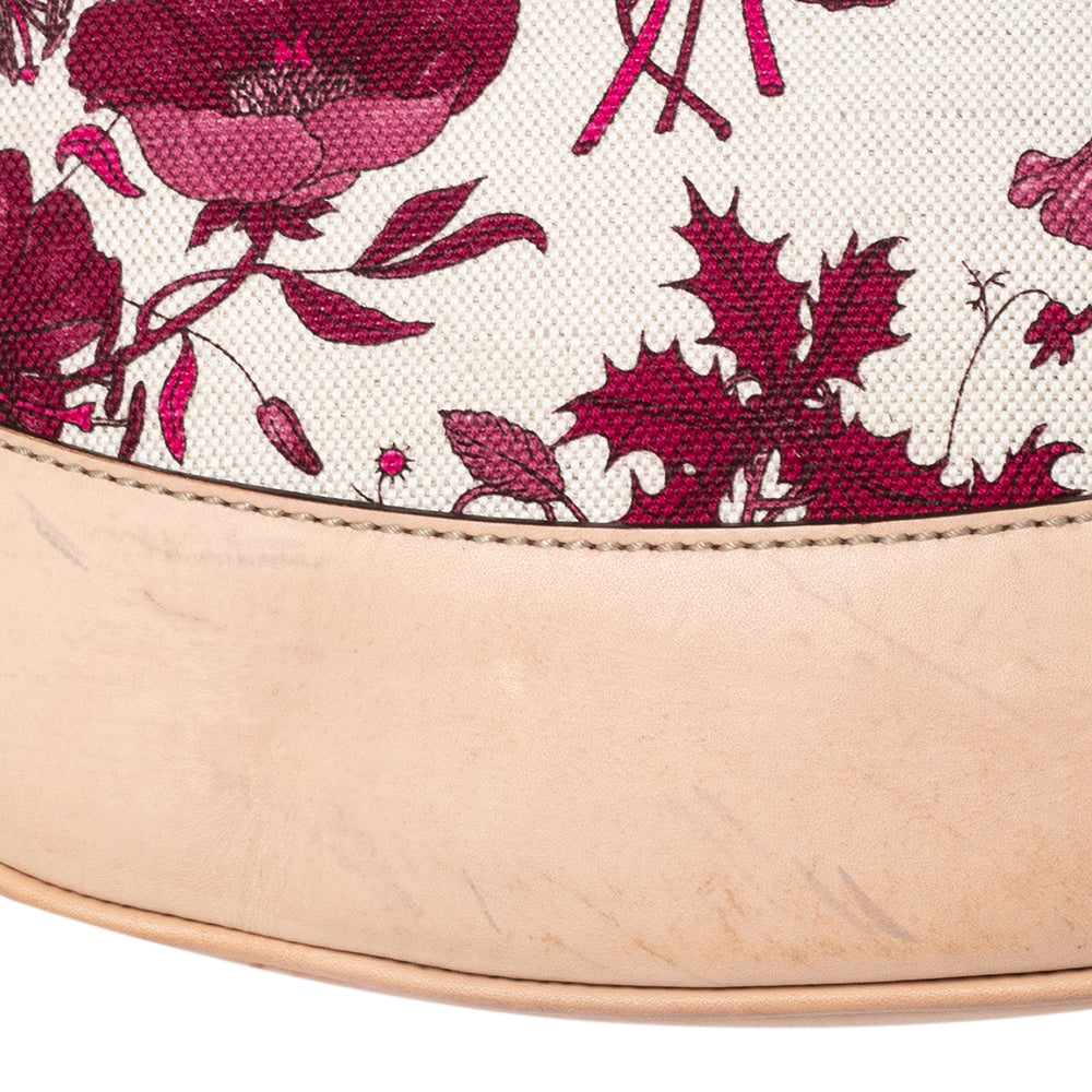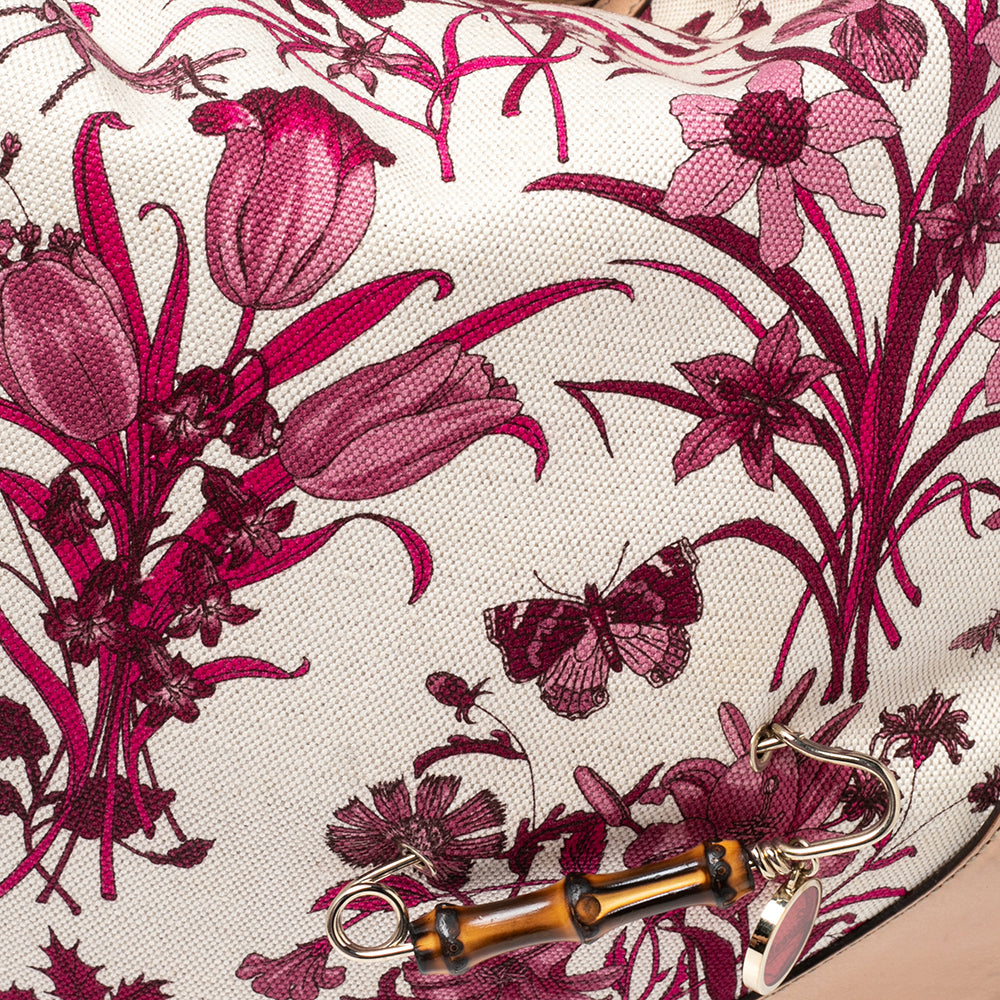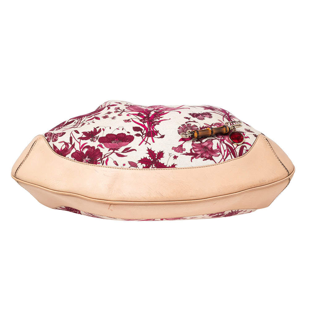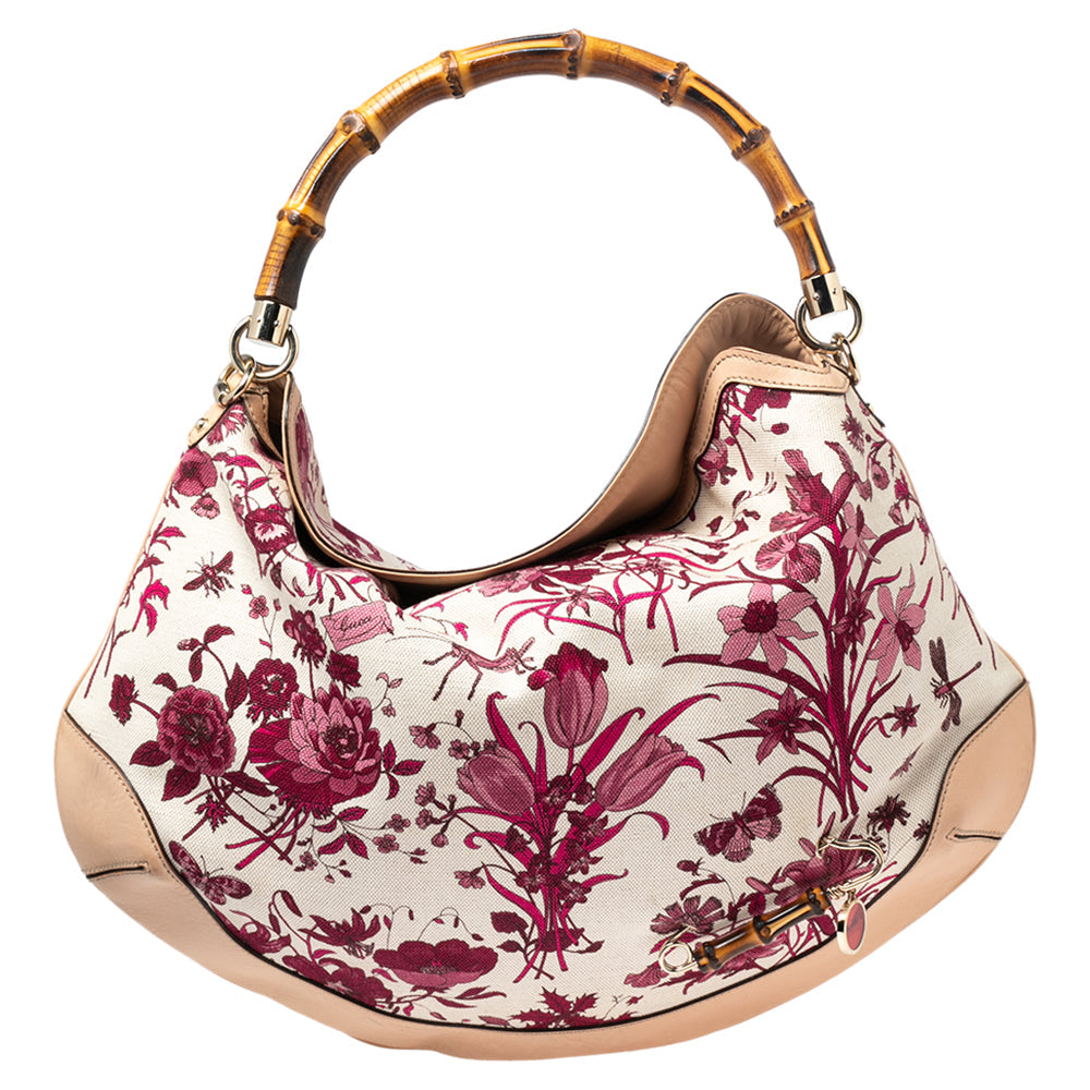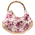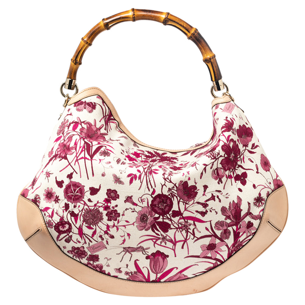 Gucci White/Pink Floral Canvas and Leather Peggy Bamboo Handle Hobo