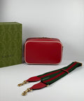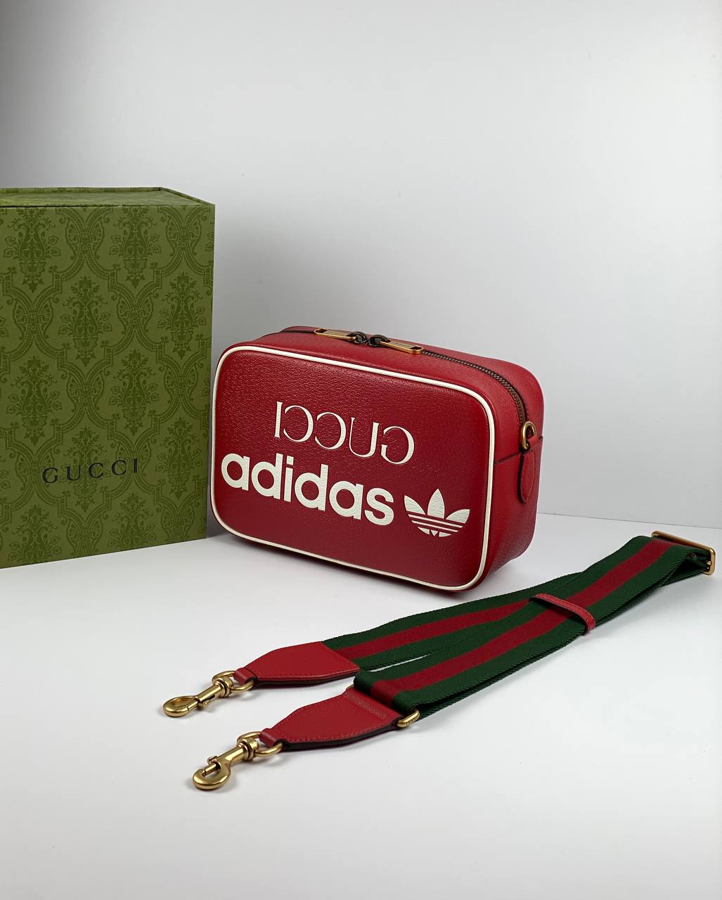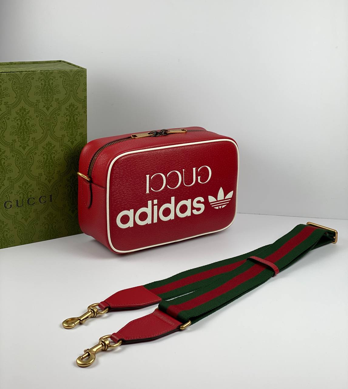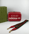 Part of the adidas x Gucci collection, this small shoulder bag features the 'Gucci adidas' and Trefoil print. adidas and Gucci venture into a collection, where the Web juxtaposes with the three white stripes, and the GG monogram combines with the trefoil. Pulling inspiration from the Creative Director�s memories of the '80s and '90s, emblematic House�s motifs mix with those of the historic sportswear brand adidas resulting in a series of hybrid looks.