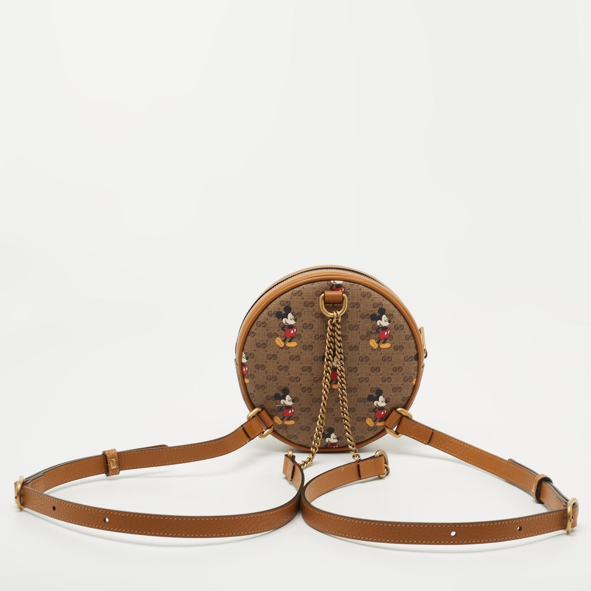 Gucci x Disney Brown GG Supreme Canvas and Leather Mickey Mouse Round Backpack