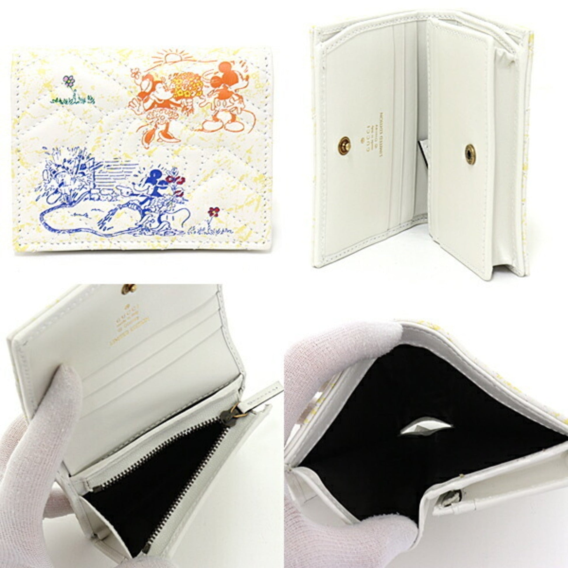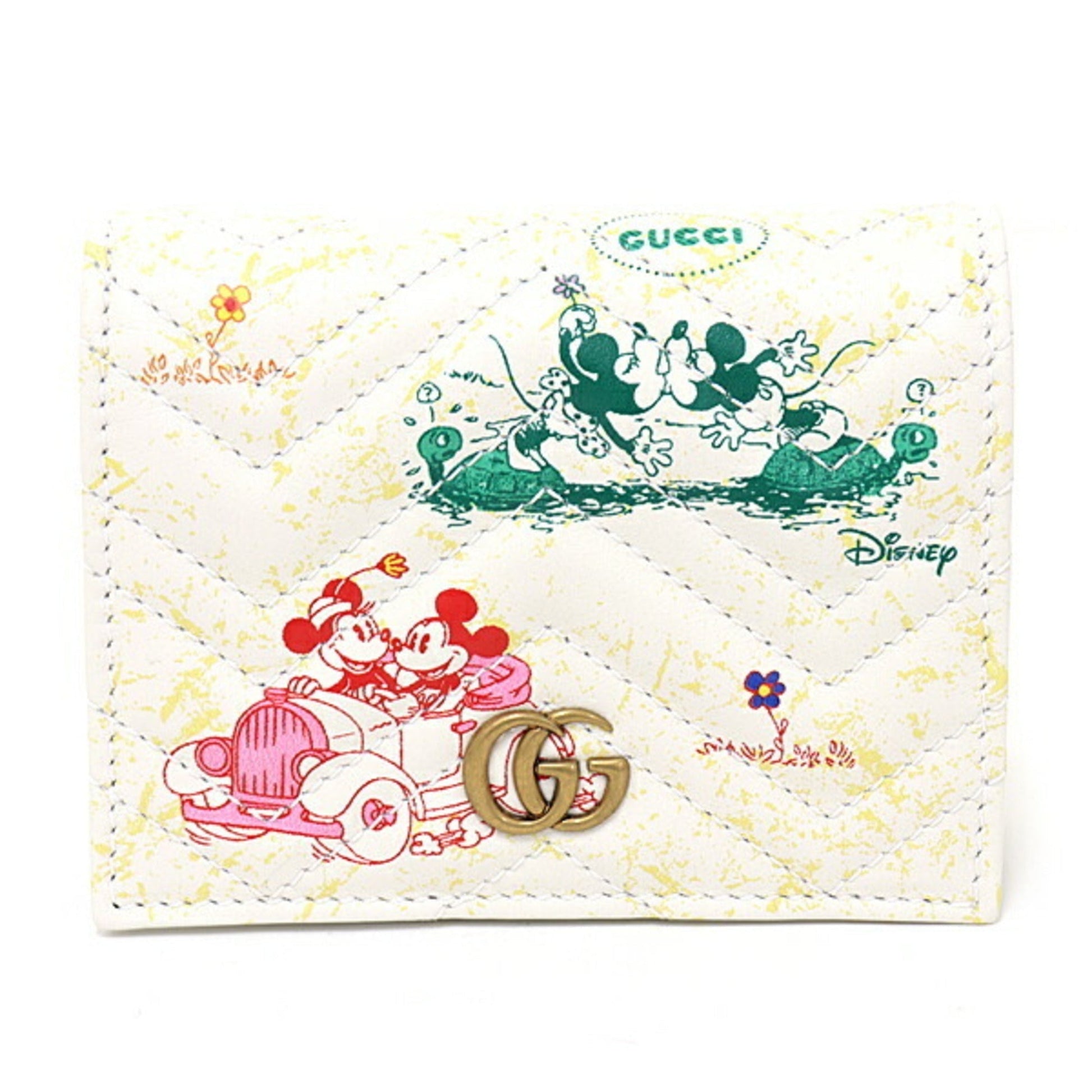 GUCCI x Disney GG Marmont Card Case Wallet Bifold Compact Double G Mickey Minnie Leather 616768 White Multicolor Gold Hardware