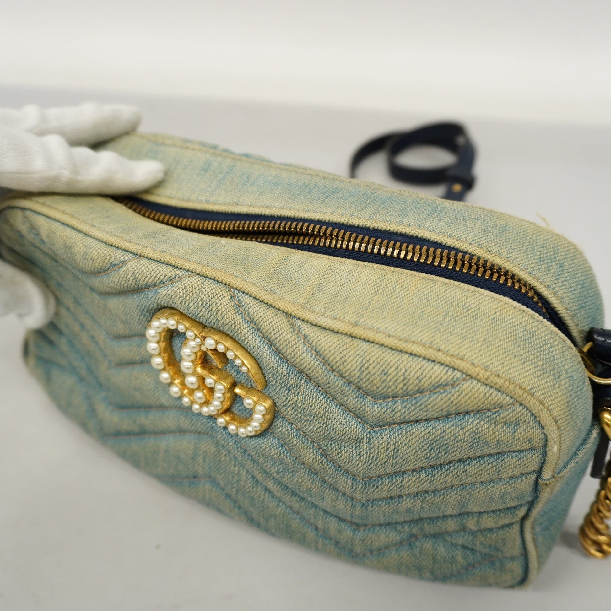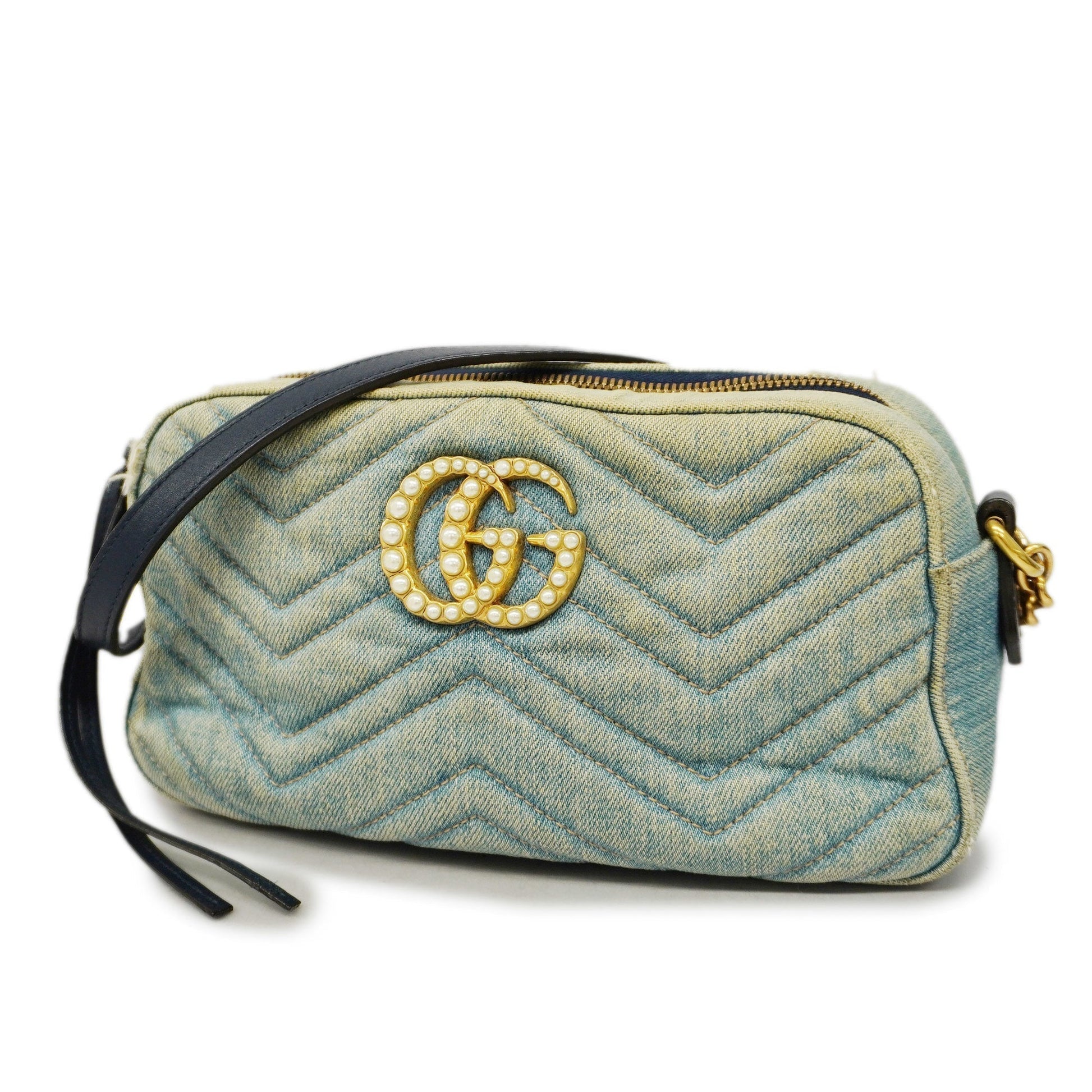 Gucci GG Marmont Shoulder Bag Velor 447632 Women's Denim Light Blue