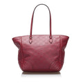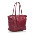 This tote bag features a leather body, flat leather handles, a top zip closure, and interior zip and slip pockets. Comes with dust bag